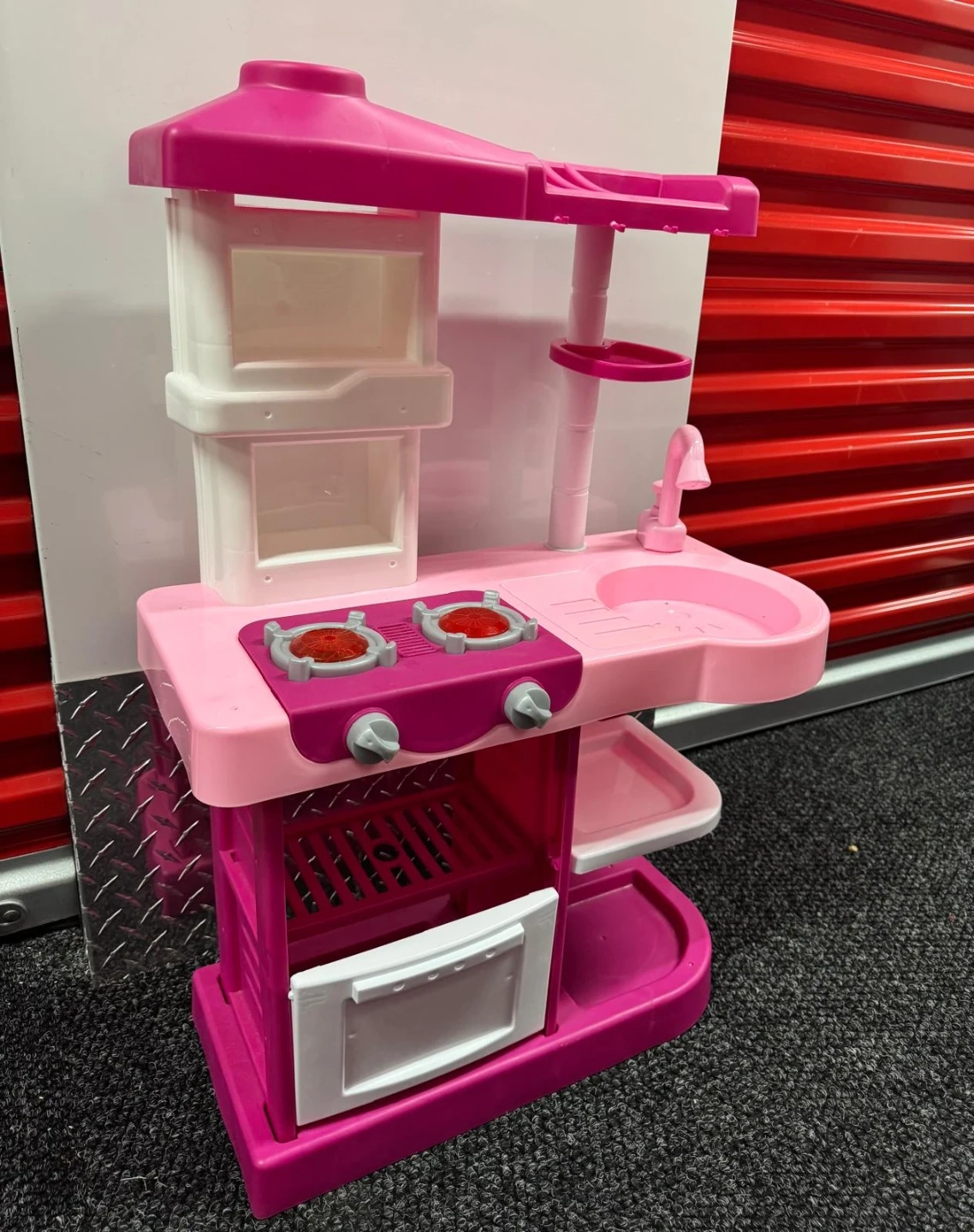 Selling a cute pink toy kitchen playset! It's in great condition and perfect for little ones who love to play pretend chef. It features a sink, stove, oven, and microwave, providing hours of fun and imaginative play