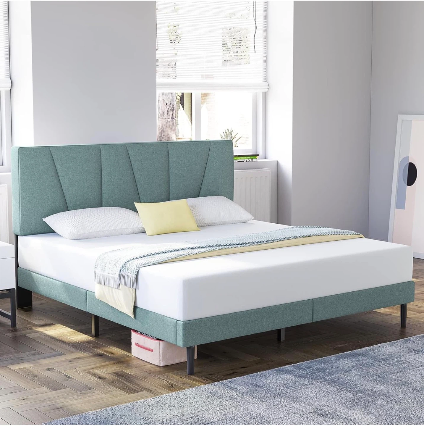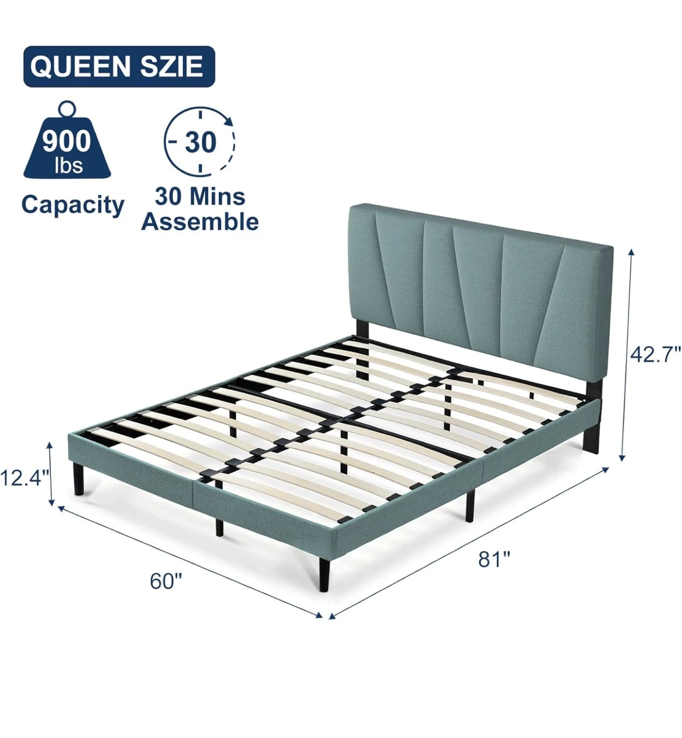Upholstered Queen Size Platform Bed Frame with Headboard and Strong Wooden Slats with No Box Spring Needed &Easy Assembly,Grey-Green.