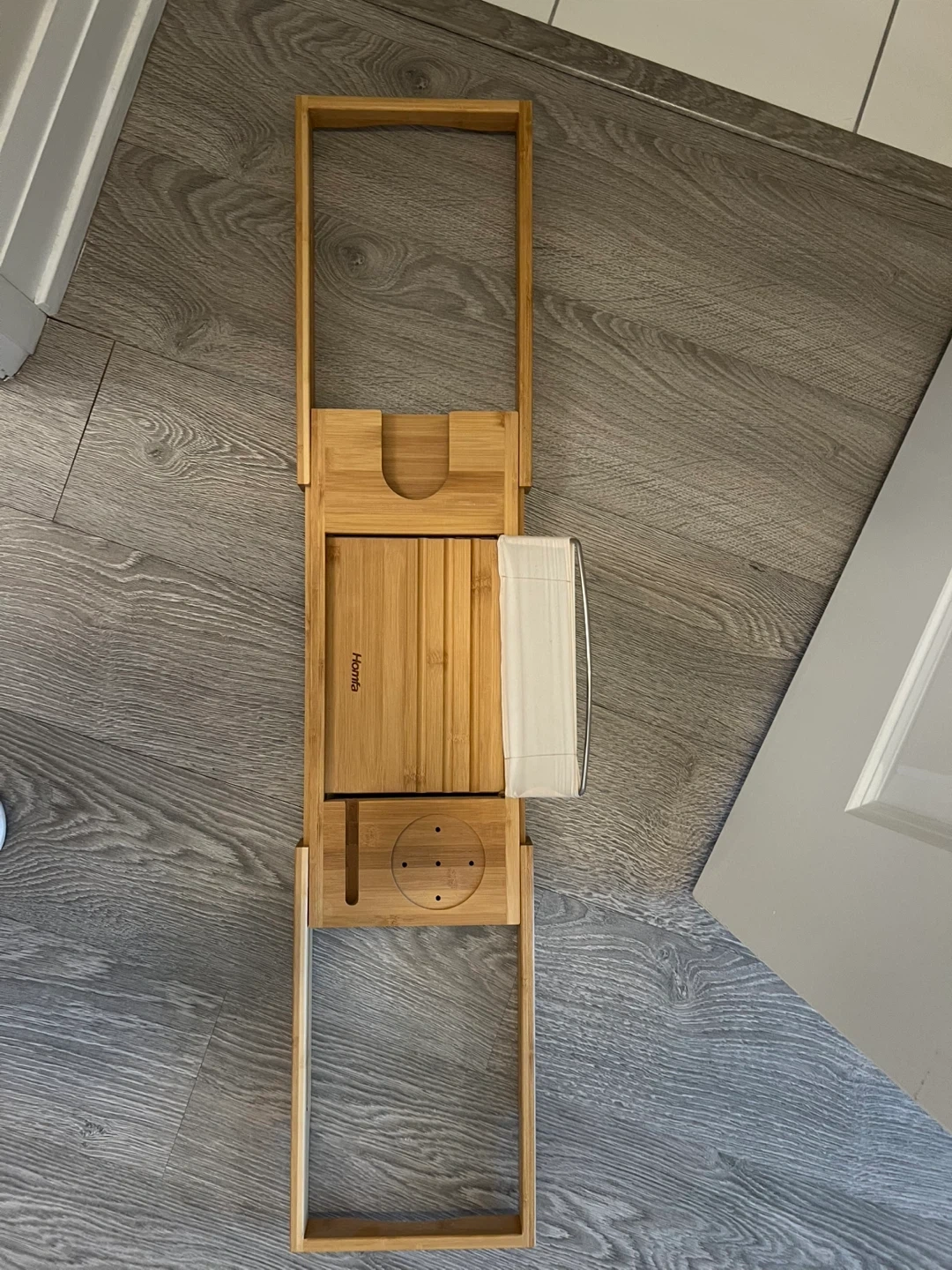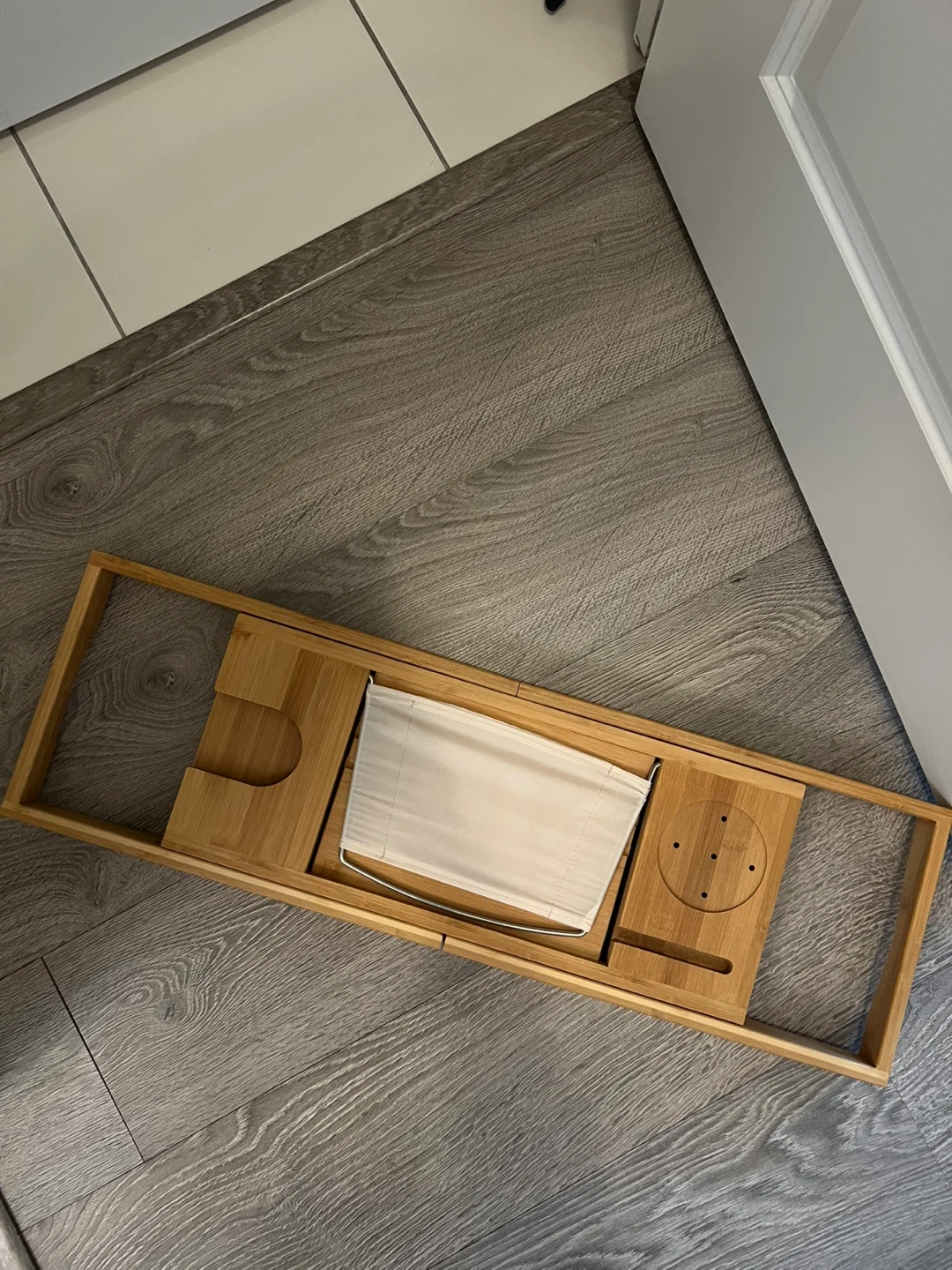 Selling a Hoomtaq bamboo bathtub caddy tray! It's in great condition and ready to add a touch of spa luxury to your bath time. Perfect for holding your book, phone, or a glass of wine while you relax in the tub