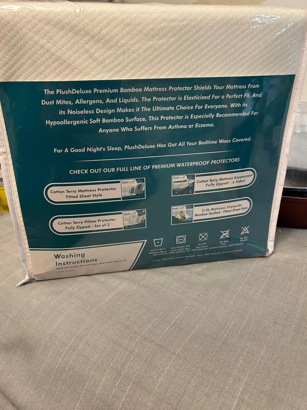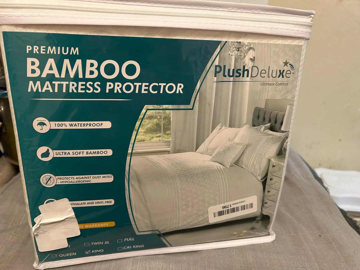 I'm selling a brand new PlushDeluxe Premium Bamboo Mattress Protector for a King size bed! It's still in its original packaging.