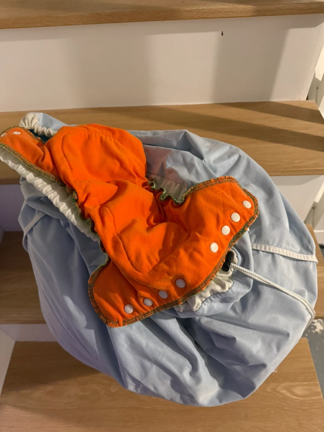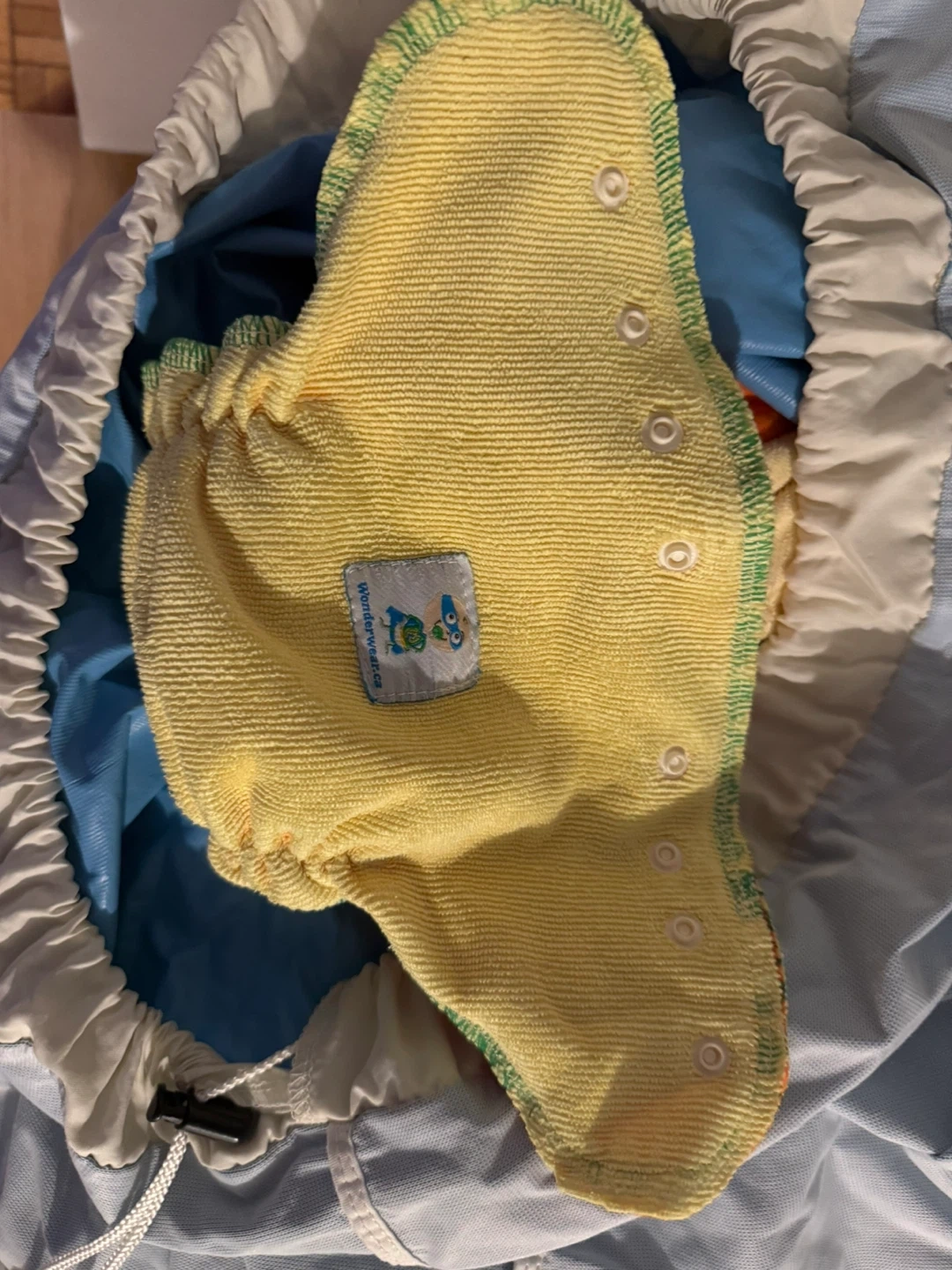 I’m giving this bag away in the hopes someone sees a use to use these and wash them themselves. They’re very soft and have different snaps to adjust sizing so no safety pins needed. I even have a diaper cover that fits these if you are interested!