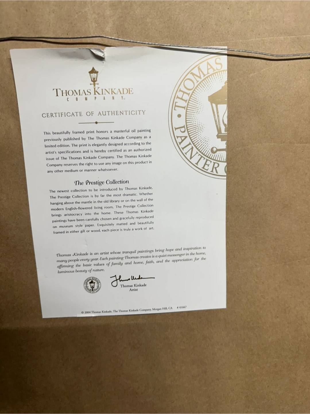 It comes with a certificate of authenticity from Thomas Kinkade Company.