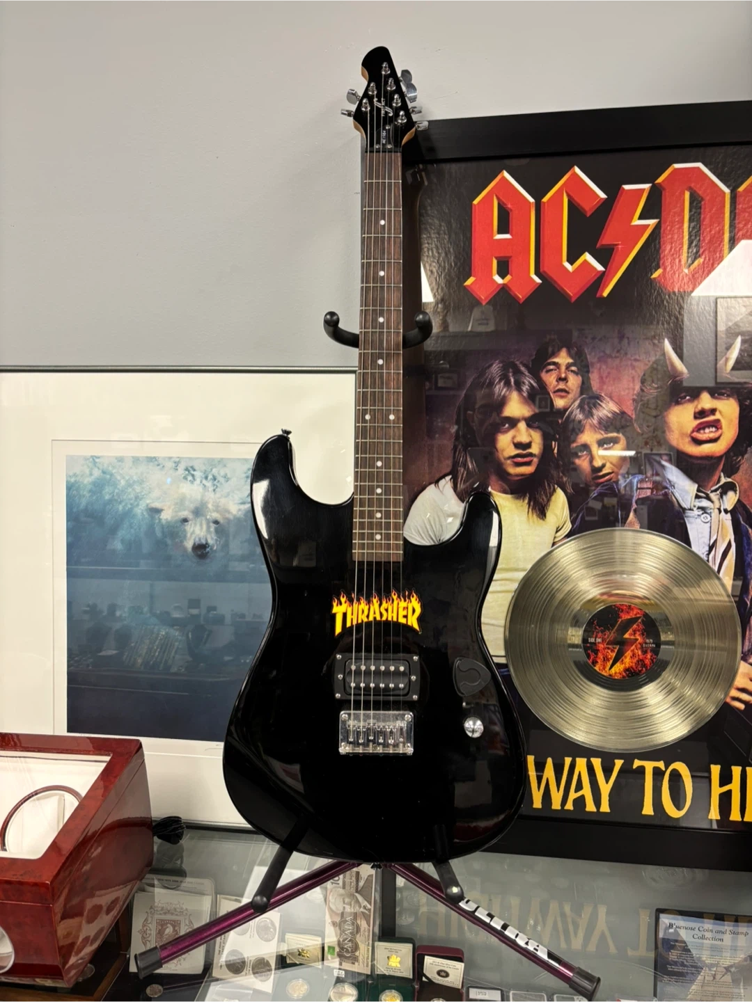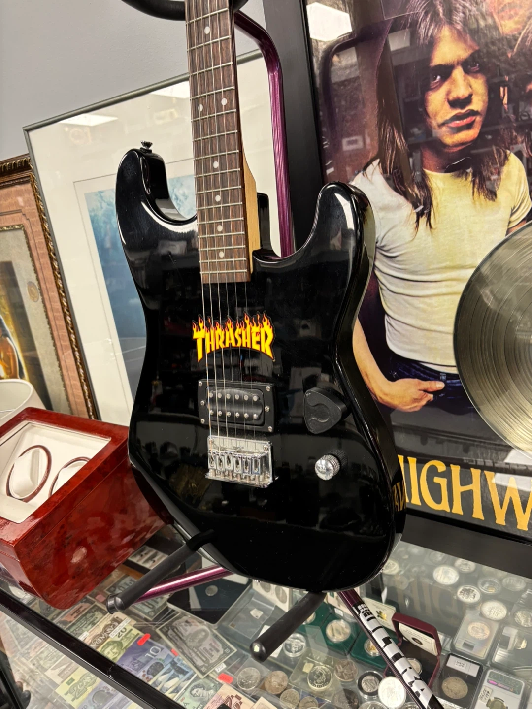 Selling a First Act ME1984 electric guitar in black. It features a Thrasher logo. Great for someone looking to start playing! if you’d like to come and view the instrument before purchase, I am located at 410 16 Ave NE Trans-Canada Building free parking in the back