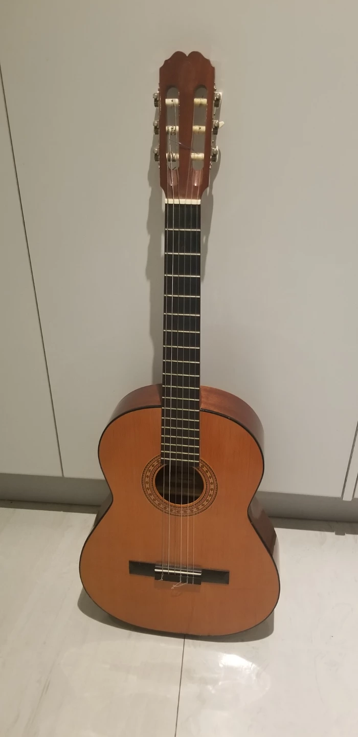 This is an Admira classical guitar, crafted in Spain, that offers a rich, resonant sound and comfortable playability. This instrument has some signs of use, as shown in the pictures.