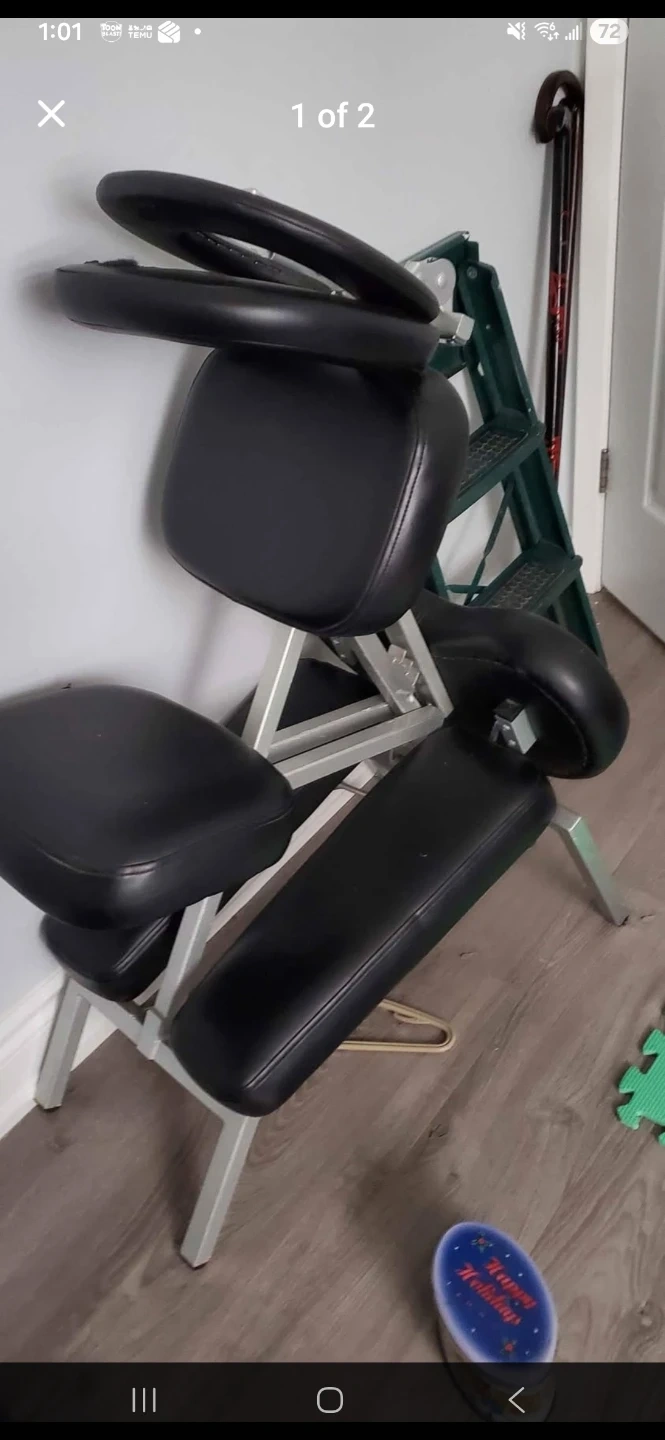 Selling a portable massage chair! It's in great shape and ready to help you relax. The chair is black and features a comfortable design for neck, back, and leg support. Perfect for home or on-the-go use