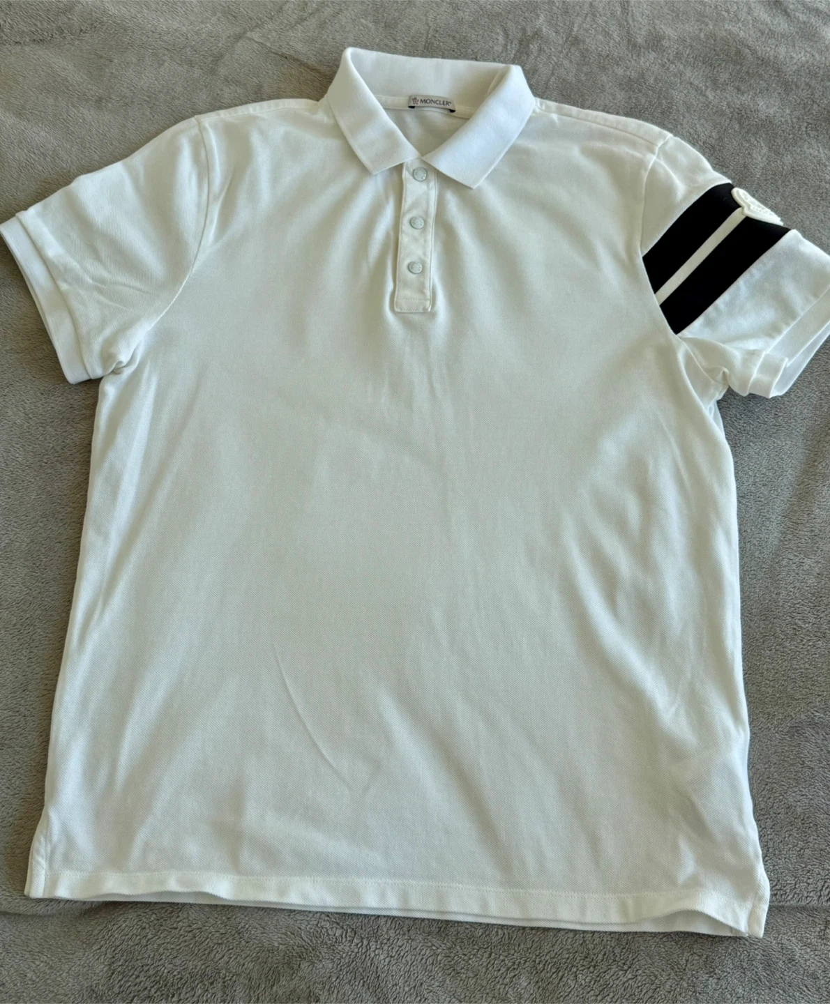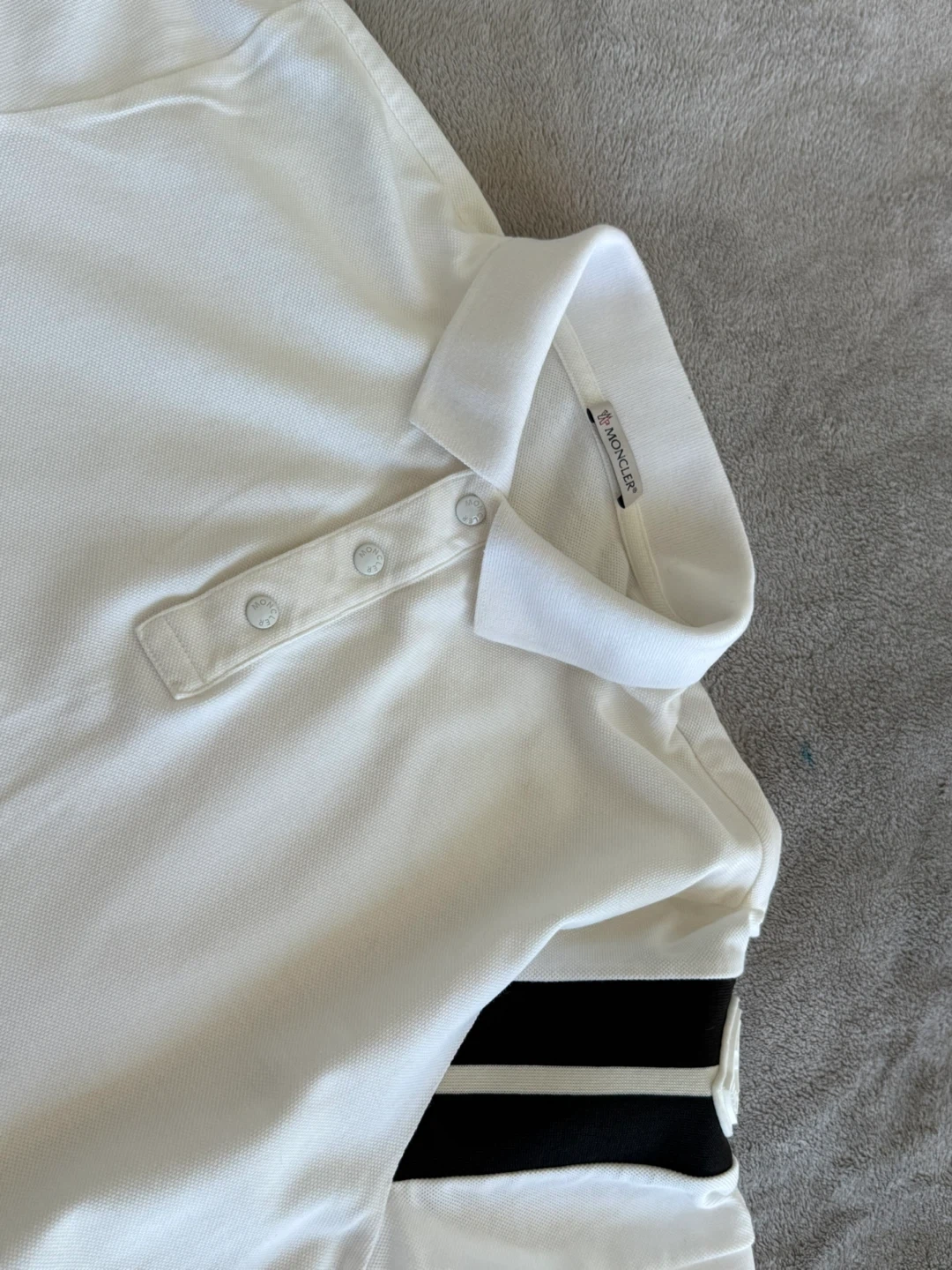 Moncler Stripe-Sleeve Cotton-Piqué Polo Shirt Men. Authentic