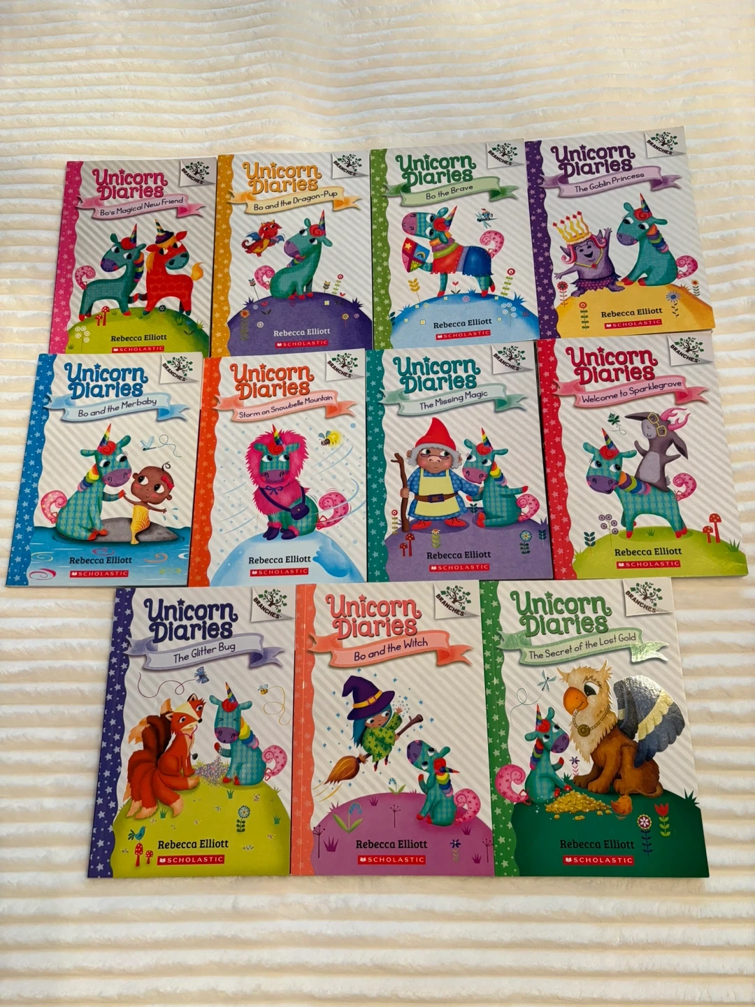 Selling a set of Unicorn Diaries books by Rebecca Elliott, published by Scholastic. These books are in good condition and ready for a new reader! The series is perfect for young readers who love unicorns and magical adventures.