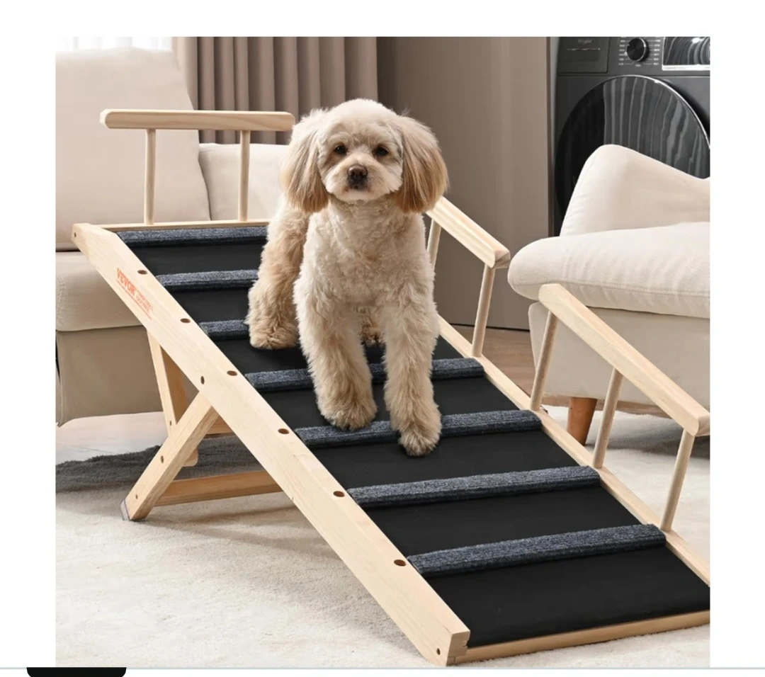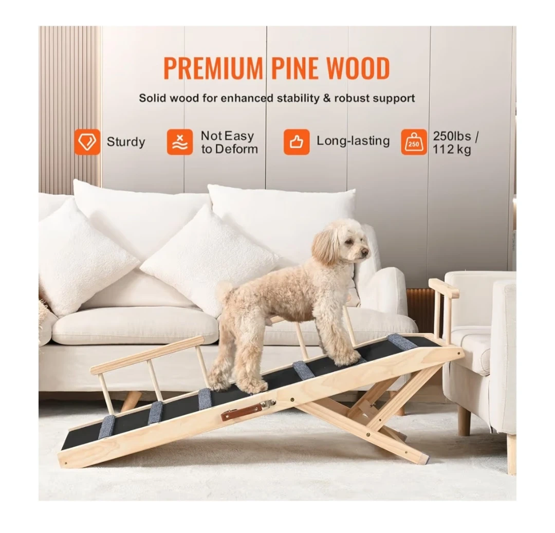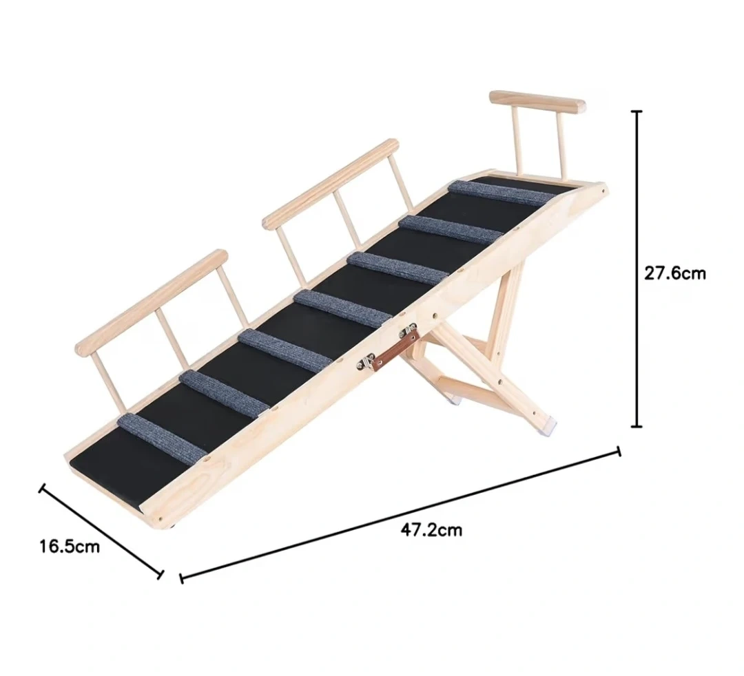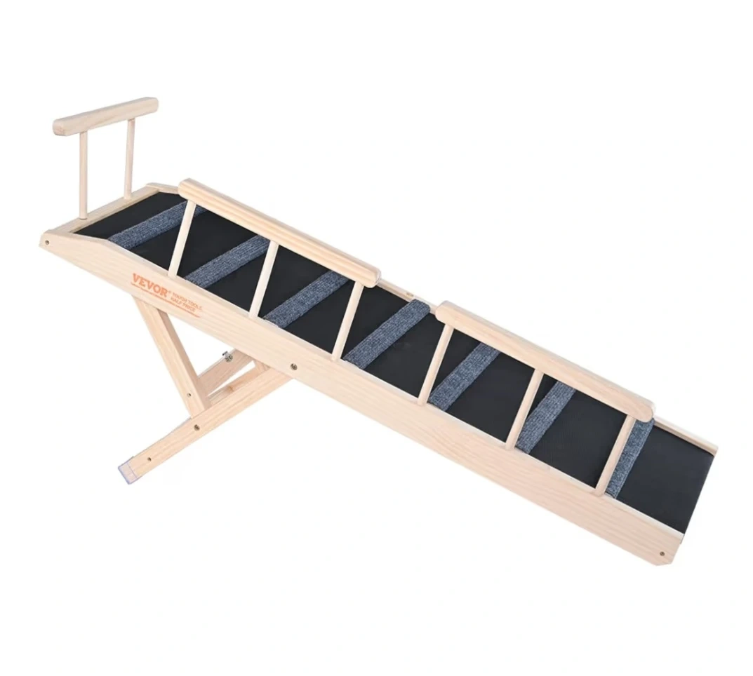 This pet ramp is perfect for helping your furry friends reach high places! It's made with premium pine wood for enhanced stability and robust support.