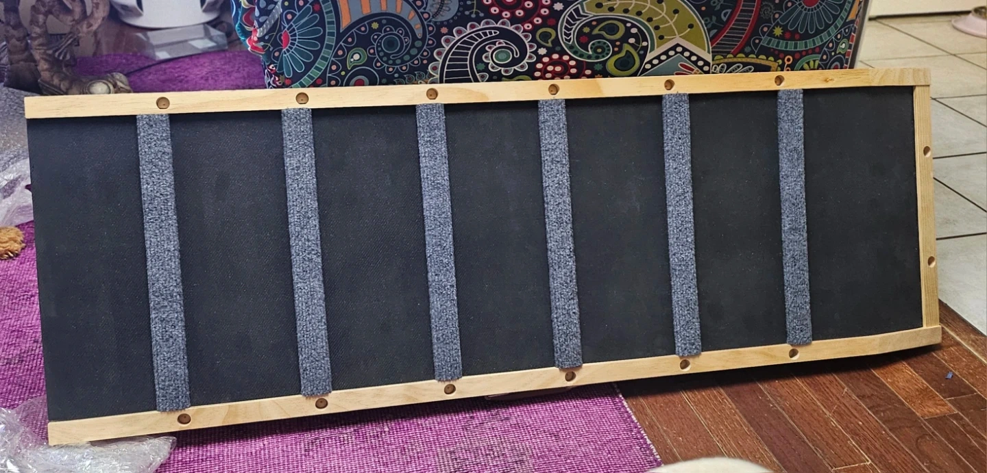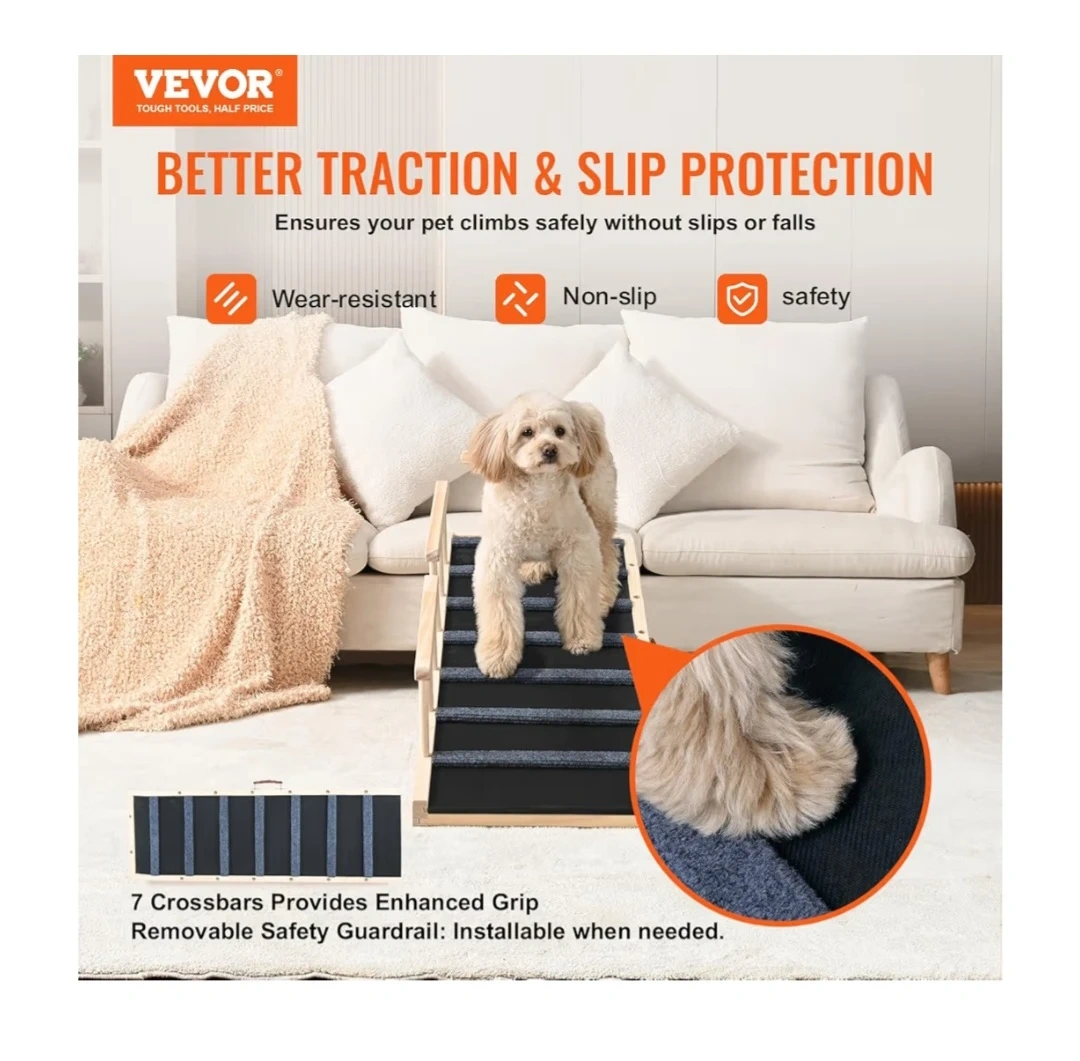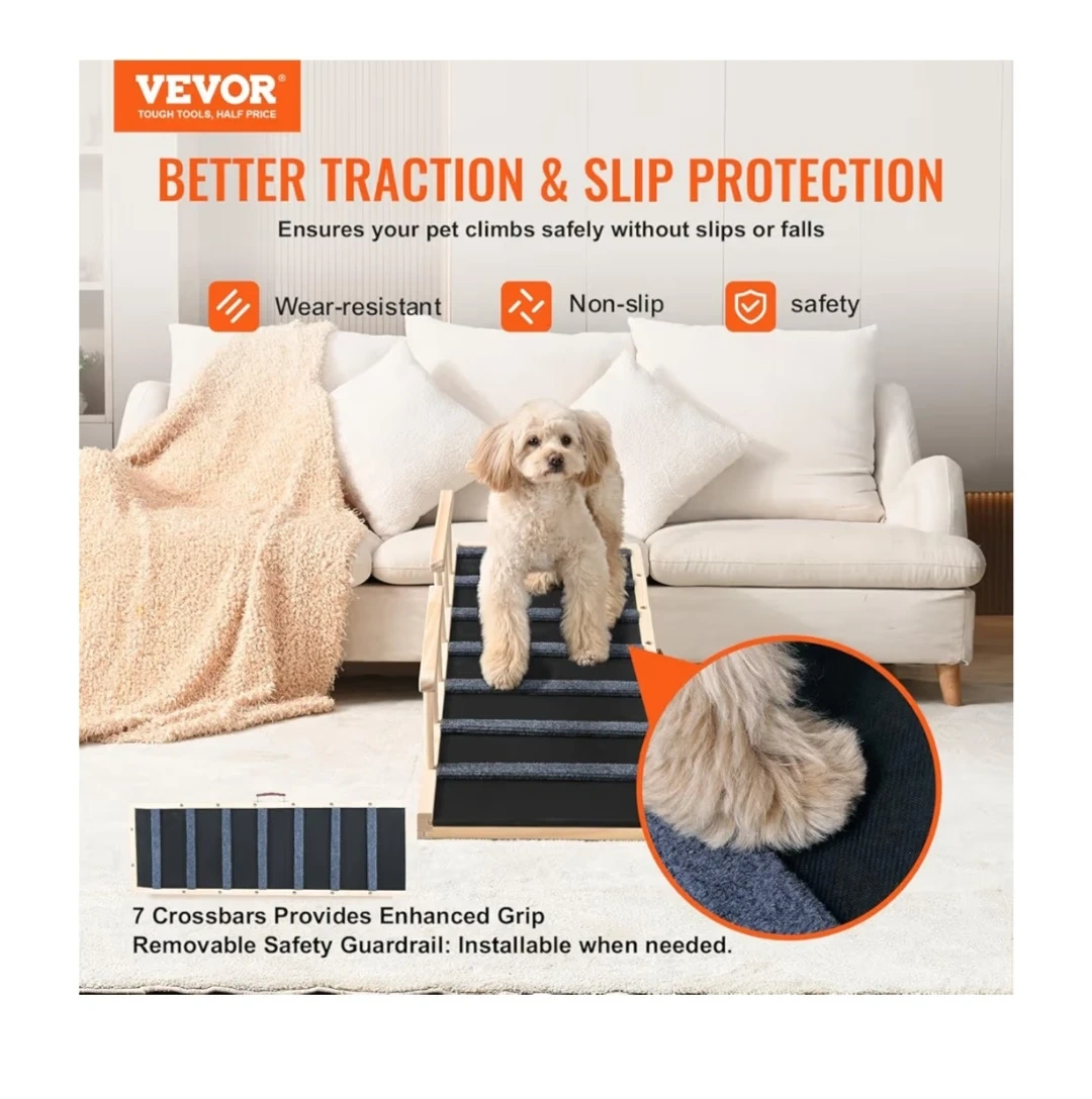 This pet ramp is perfect for helping your furry friends reach high places! It's made with premium pine wood for enhanced stability and robust support.