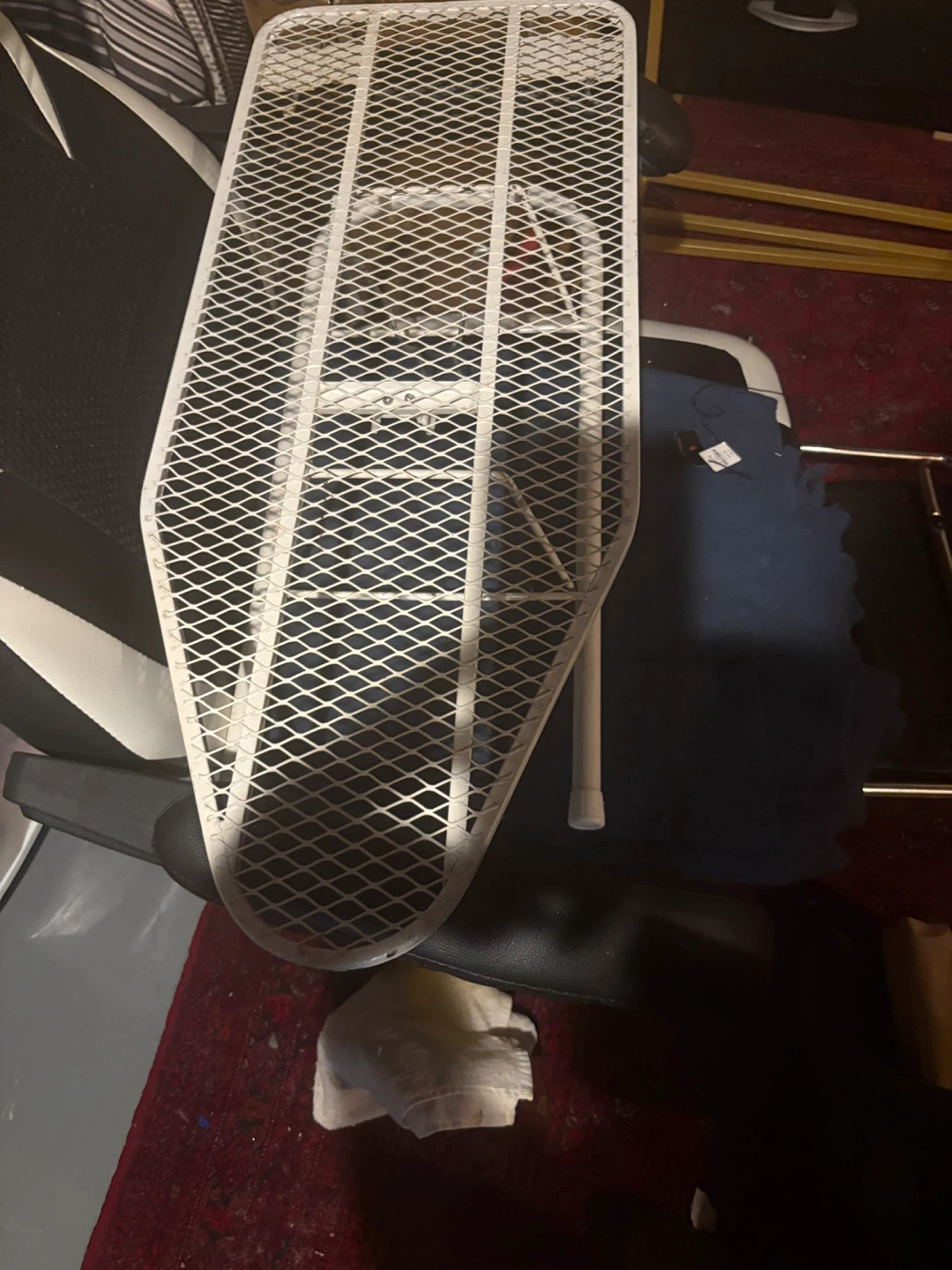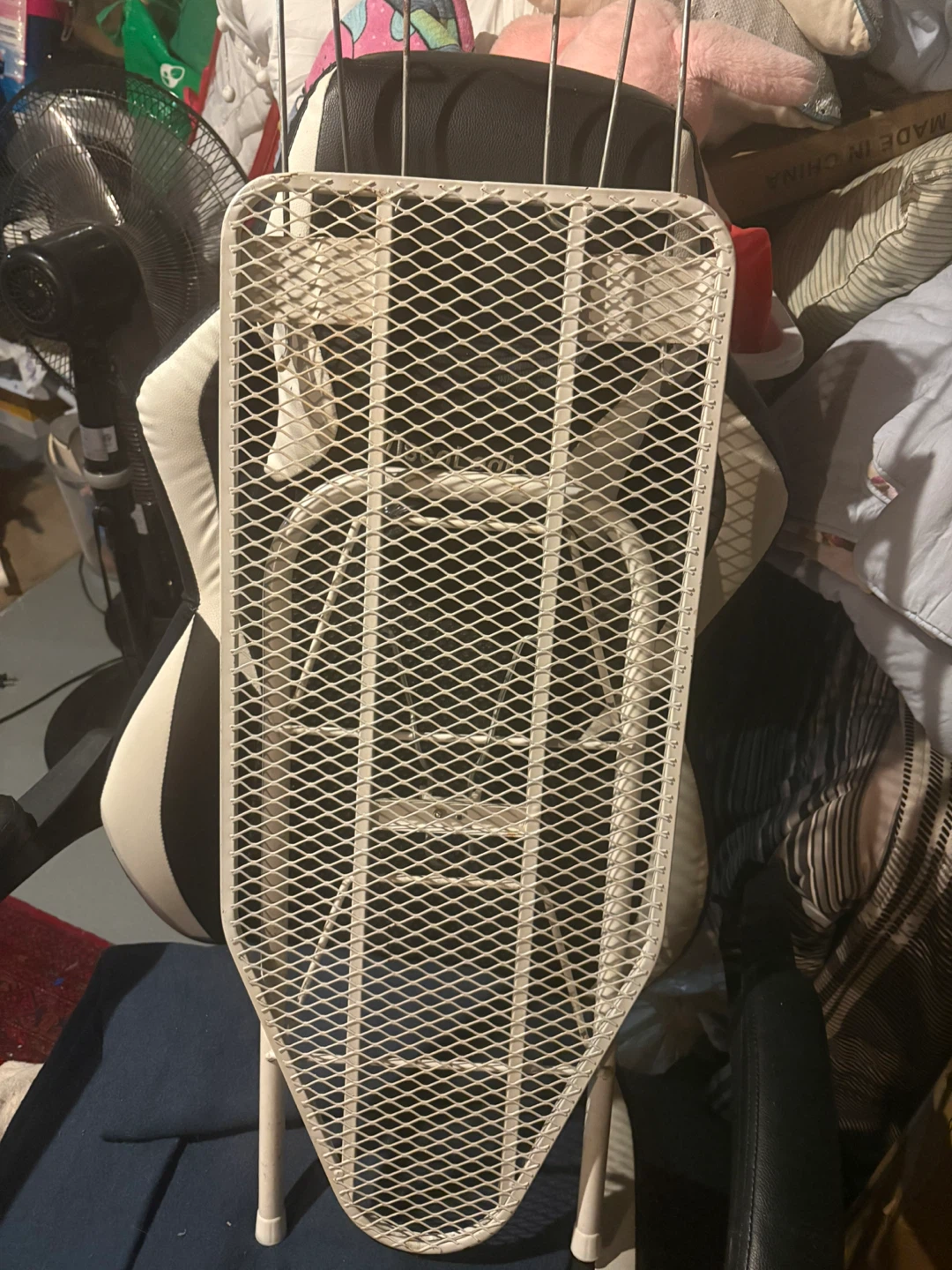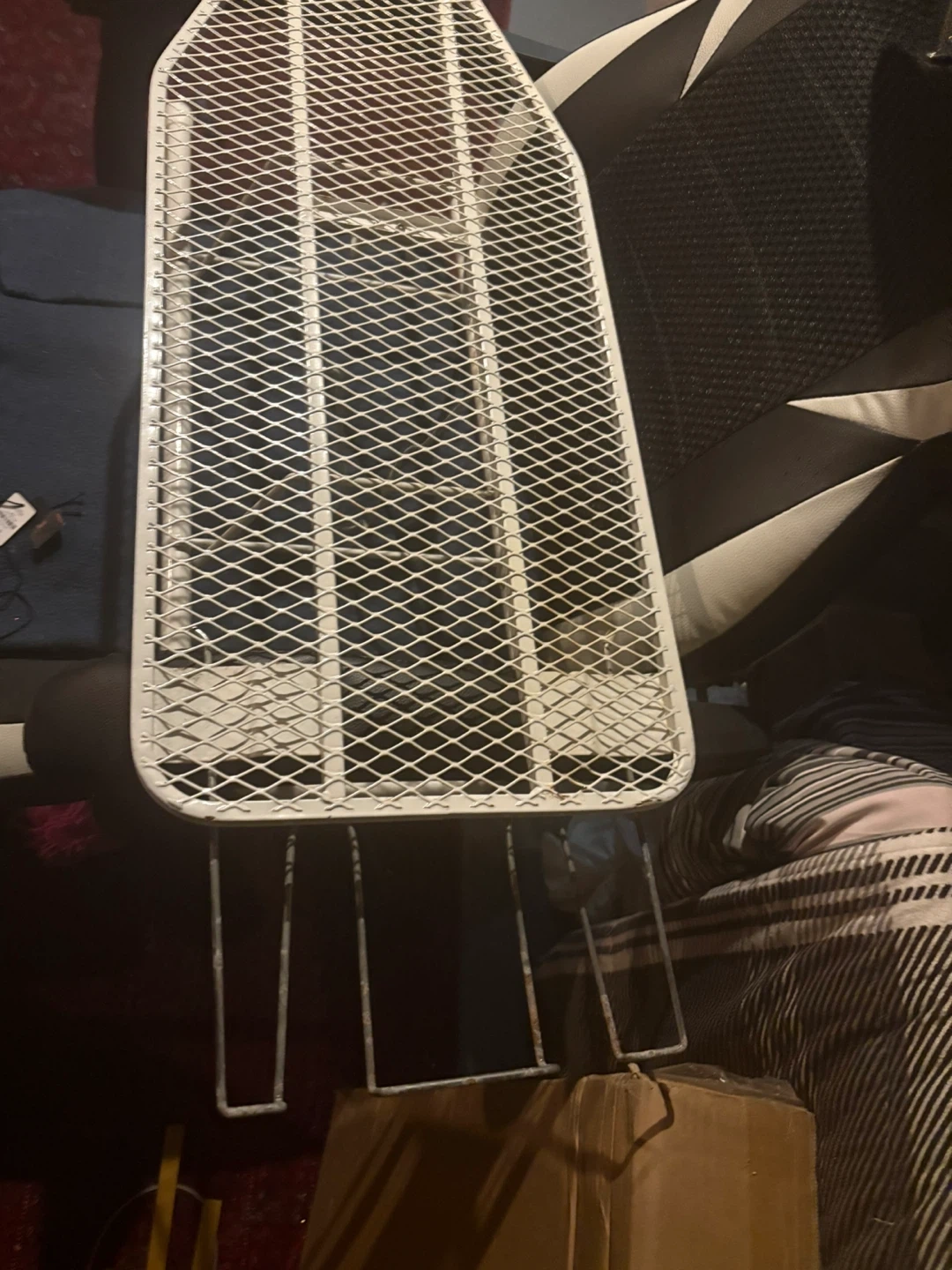 Selling a white metal ironing board. It's in good condition and ready to use! Perfect for getting those wrinkles out of your clothes