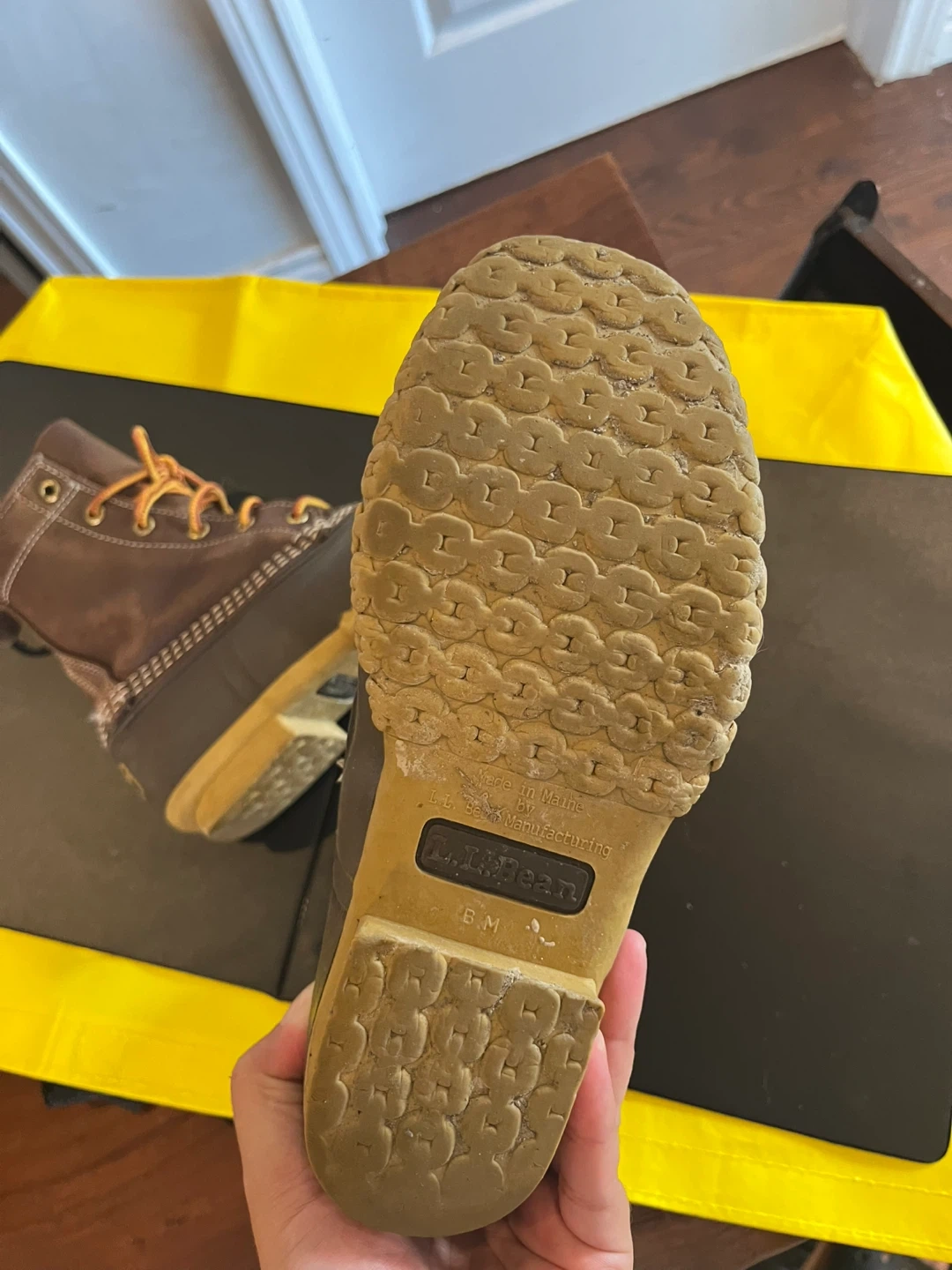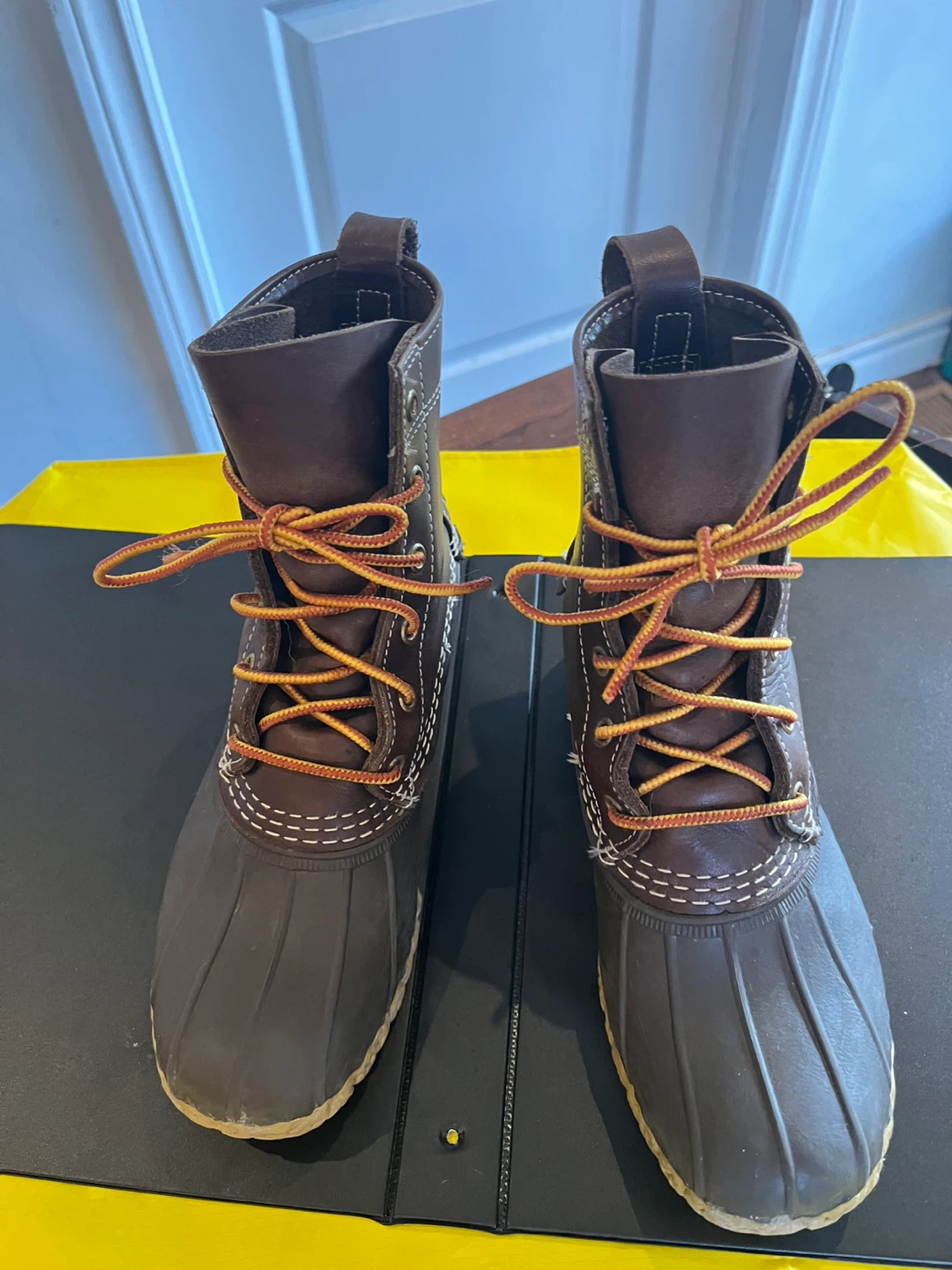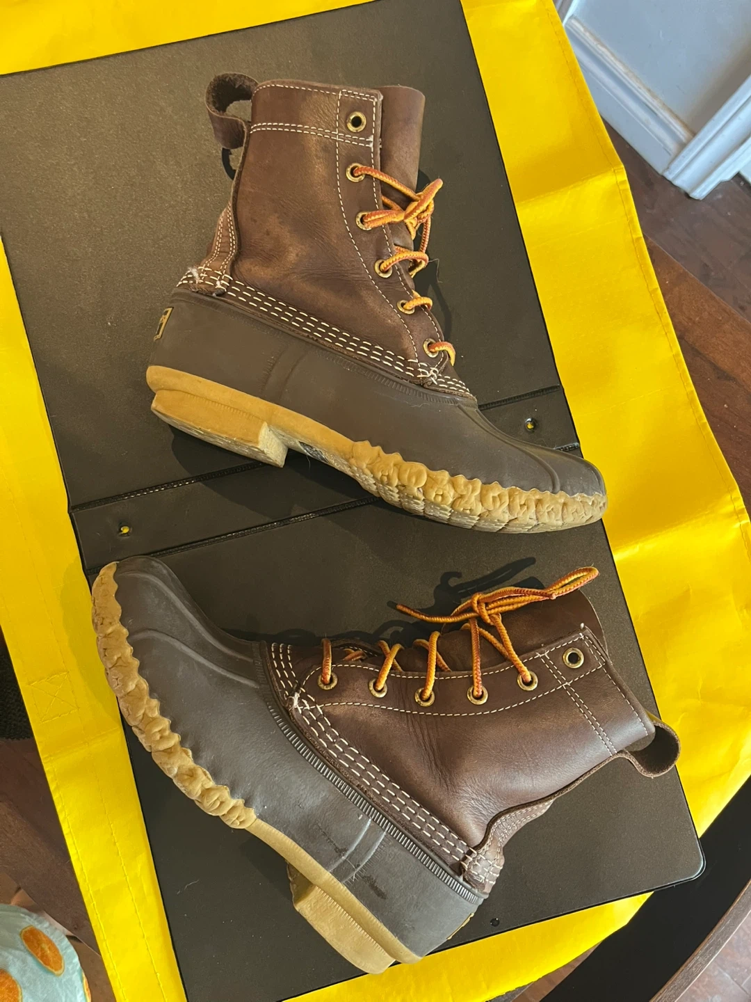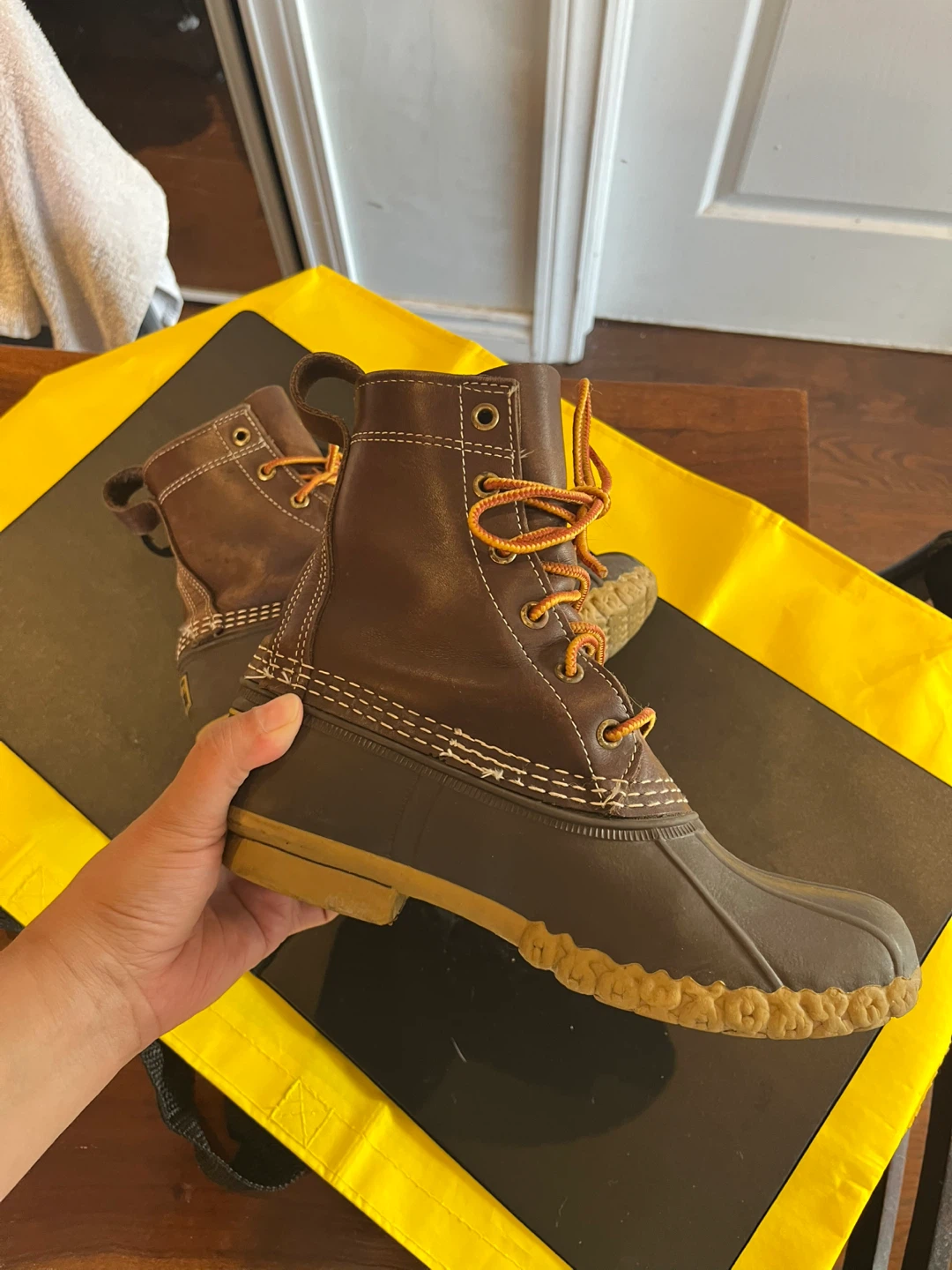 Selling a pair of L.L.Bean Bean Boots in brown. They are a size 7 w. Great for all kinds of weather!