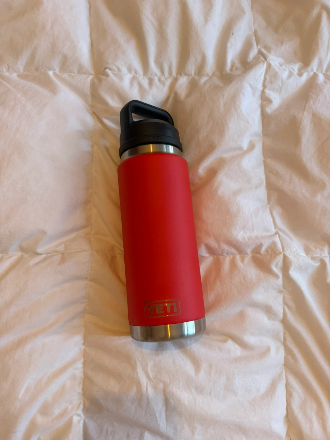 Selling a red YETI water bottle! It's in great shape and never used. Perfect for staying hydrated on the go. Has the two piece chug cap. 26 oz or 769ml bottle.