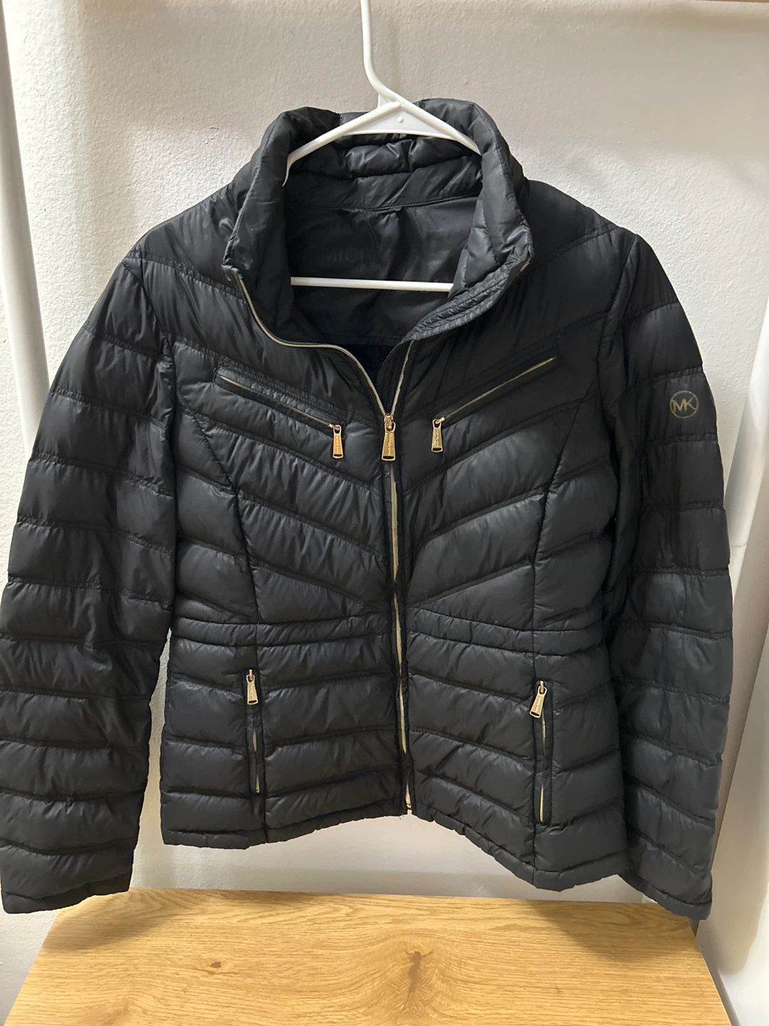 Selling a black Michael Kors puffer jacket. It's in great condition and ready to keep you warm! The jacket features a stylish quilted design and gold-tone zippers.