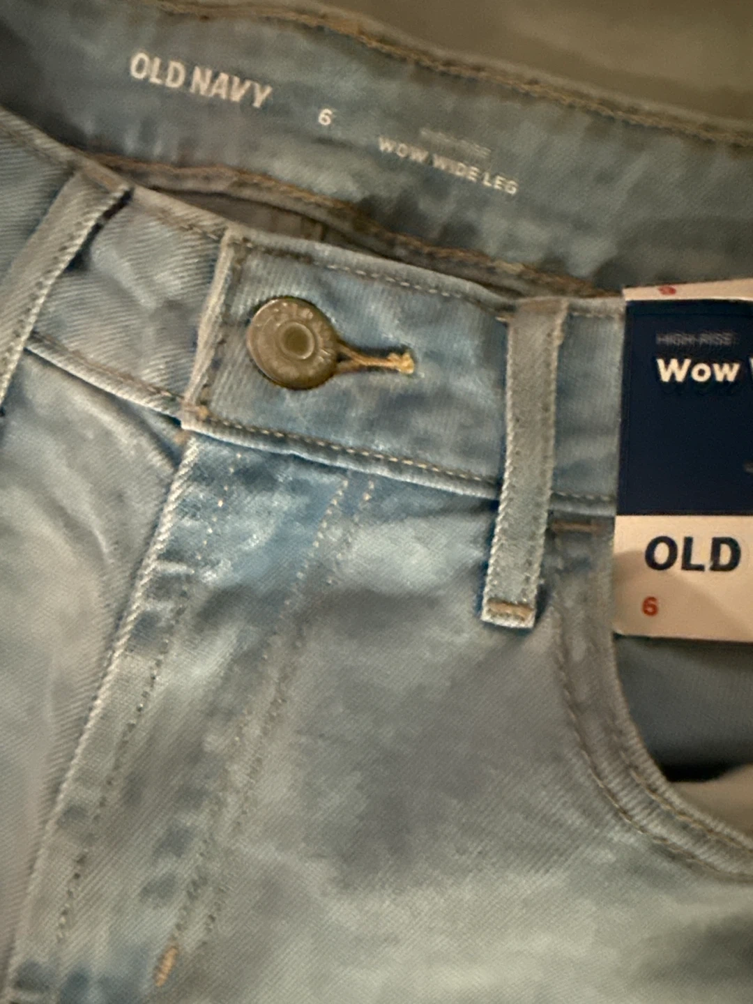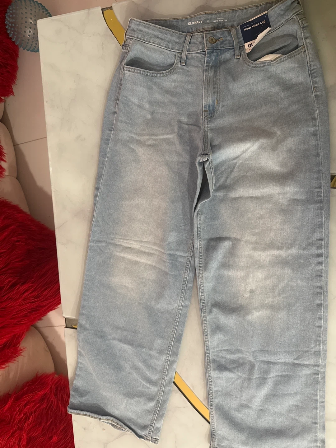 Selling a pair of Old Navy Wow Wide Leg jeans in a light wash. They are a size 6. These jeans are in great condition and ready for a new owner! Perfect for a casual, comfortable look.