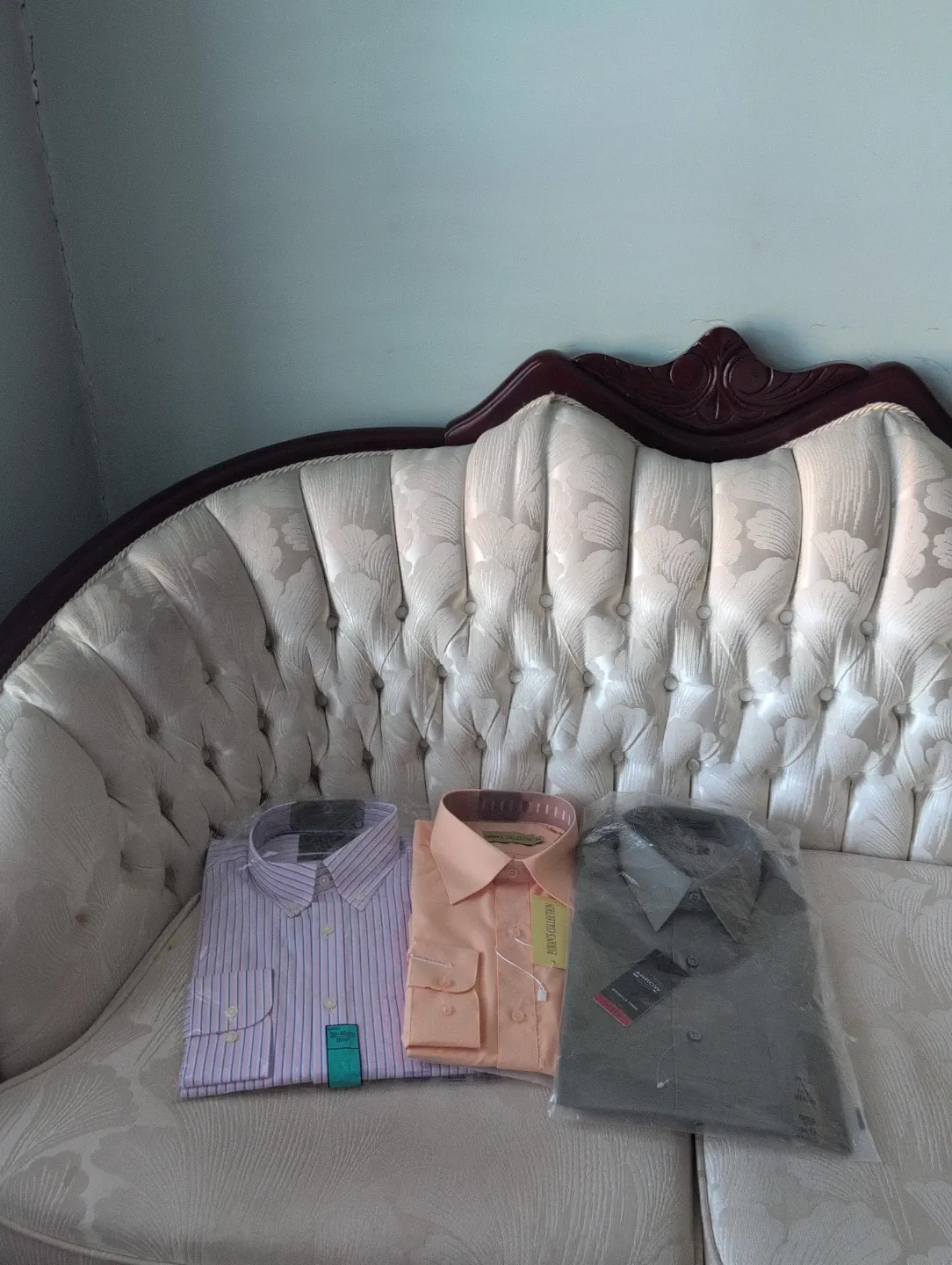 Selling three brand new men's dress shirts, still in their original packaging with tags attached!
