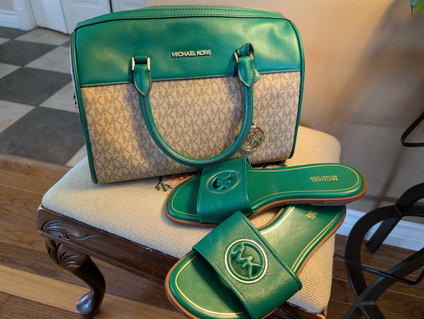 Michael Kors Green Satchel & Sandals Set