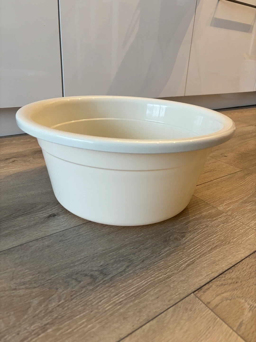 Selling a large plastic wash basin, 40 cm in diameter and 18 cm deep.