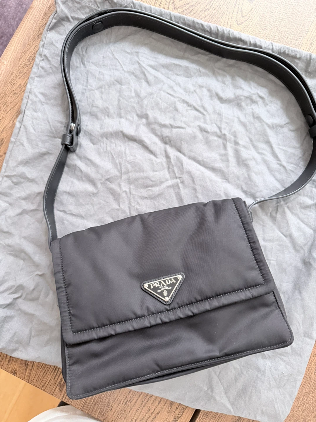 Selling a stylish Prada shoulder bag in black nylon. It's in great condition and perfect for everyday use! The bag features the iconic Prada logo and a sleek design. It's a great addition to any wardrobe!