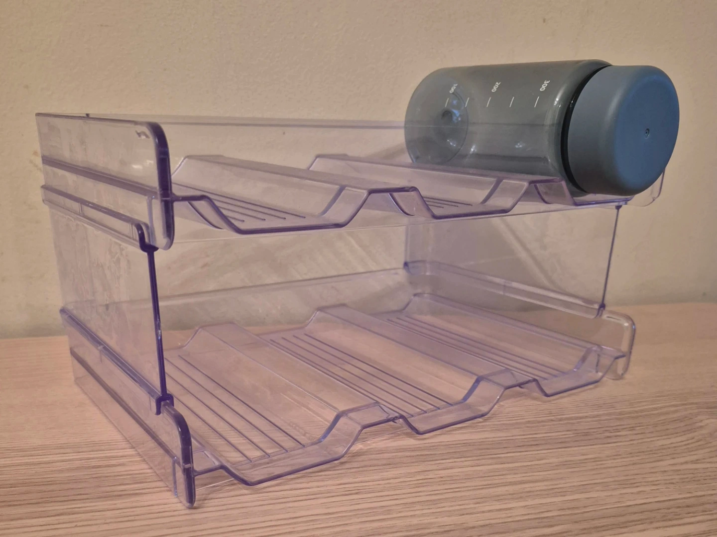 Selling a clear, two-tier water bottle organizer. It's perfect for keeping your water bottles tidy and accessible. Great for the fridge or pantry! Never used.