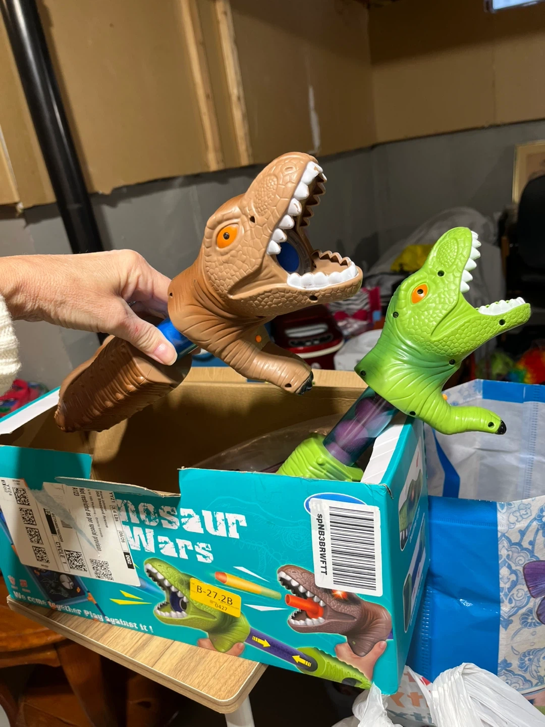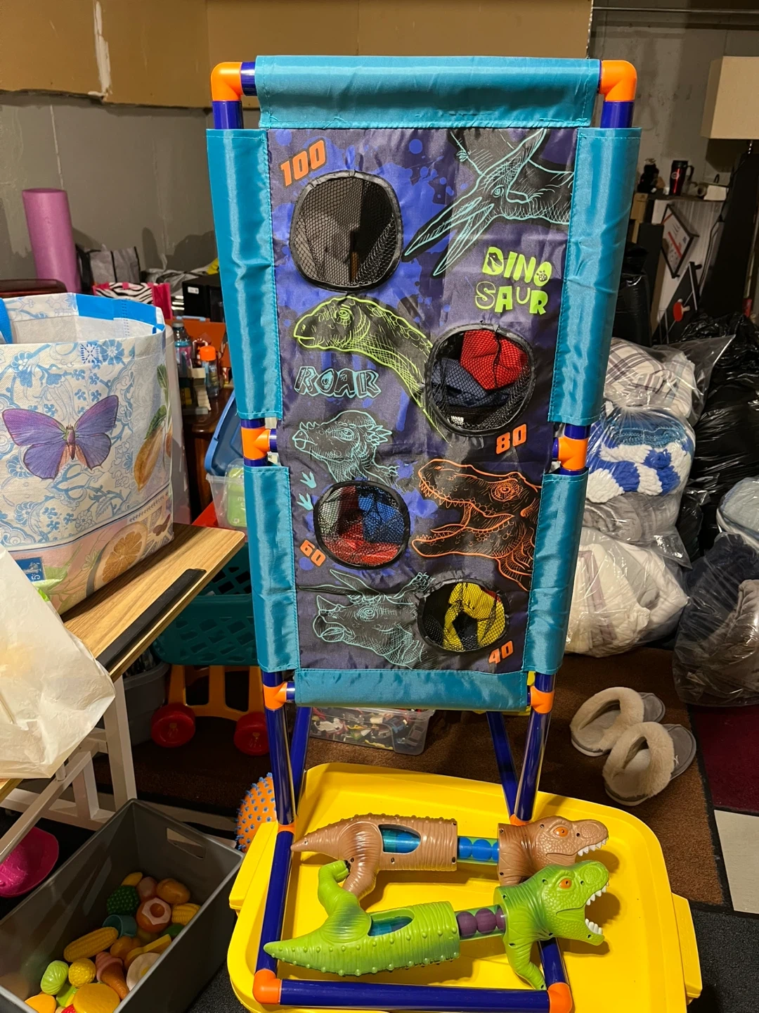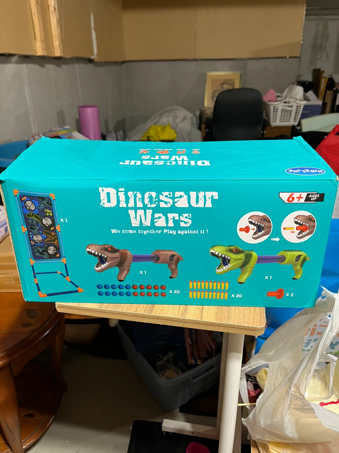 Selling a Dinosaur Wars shooting game for kids! It comes with the box and all the components. This game is great for kids 6+ years old. It includes dinosaur-themed blasters and a target board for interactive play. Hours of fun!