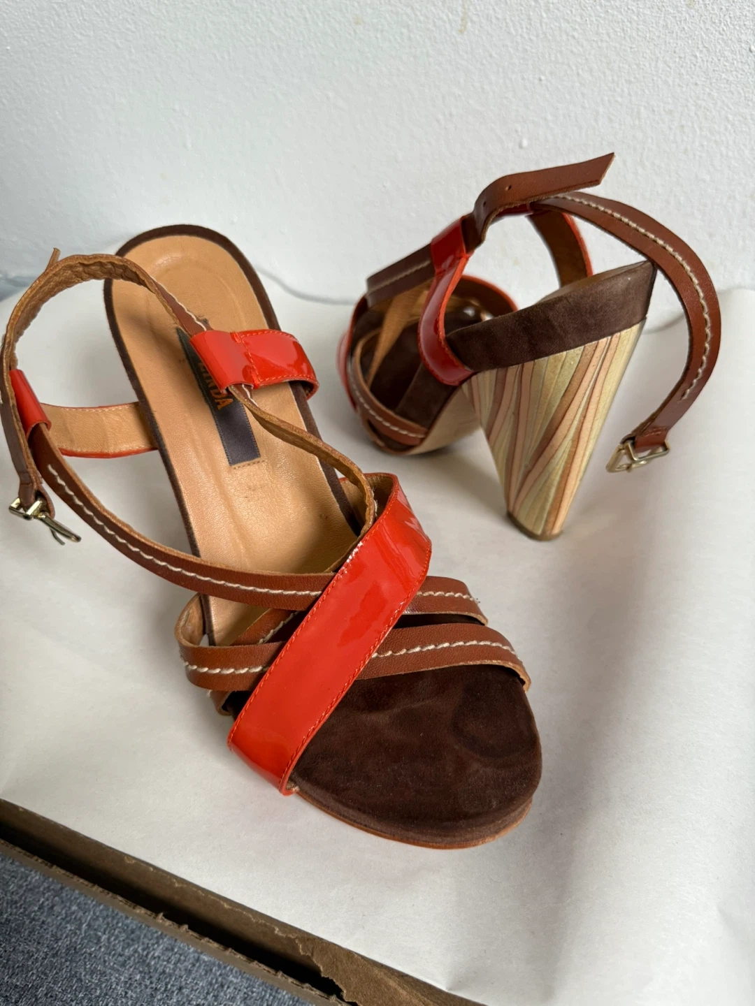 Zinda Orange & Brown Leather Heels - Size 7