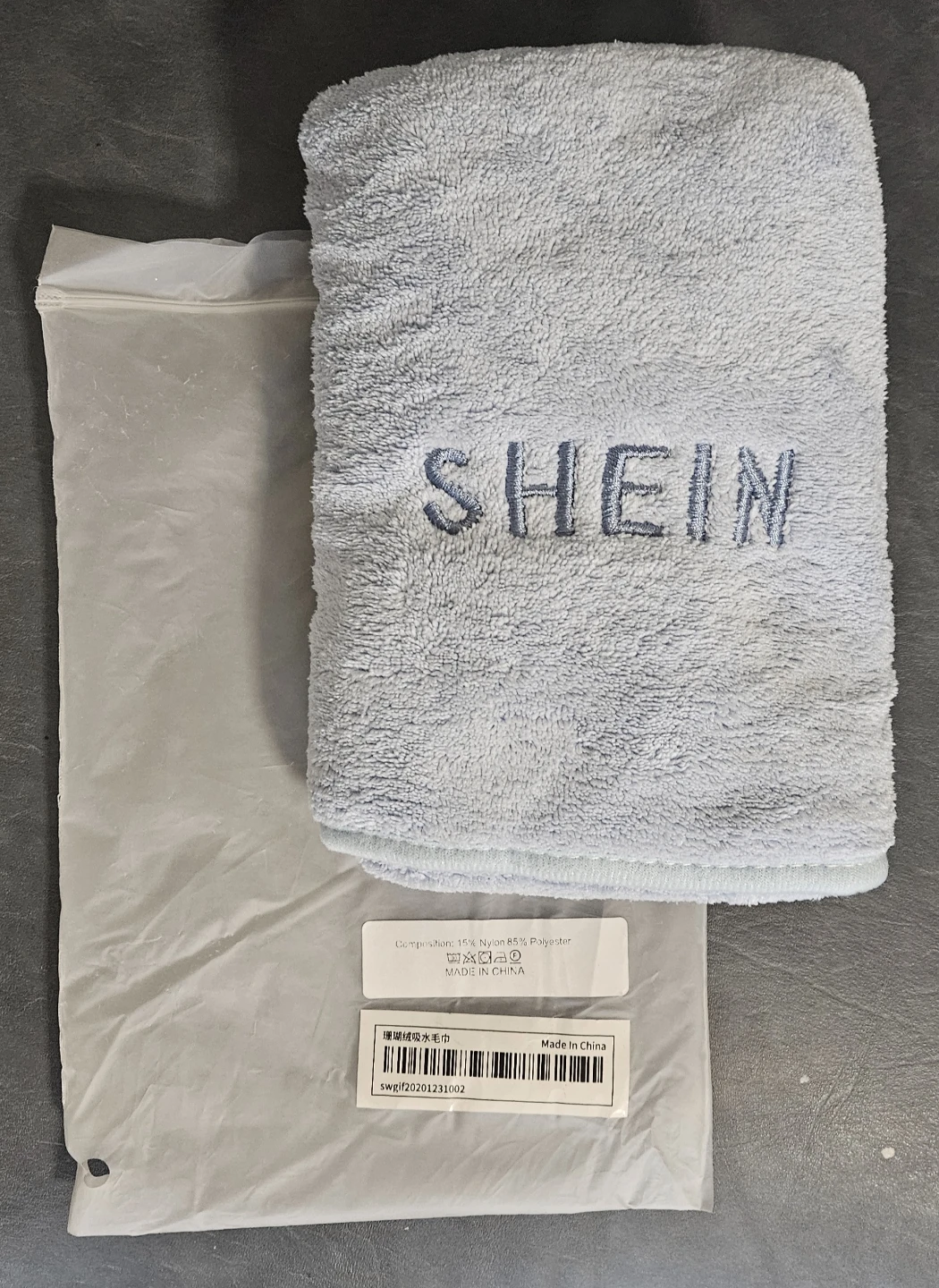 I have a Brand New SHEIN Light Blue Coral Fleece Absorbent Towel ✨️🧡 for sale! It's a light blue colour and made of 15% nylon and 85% polyester. It is still in the original packaging. From a smoke-free, pet-free home. Bundle discounts are available—feel free to browse my other listings. Thanks for looking! 😊🙏