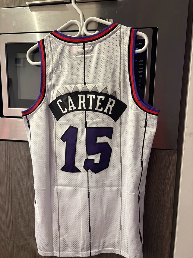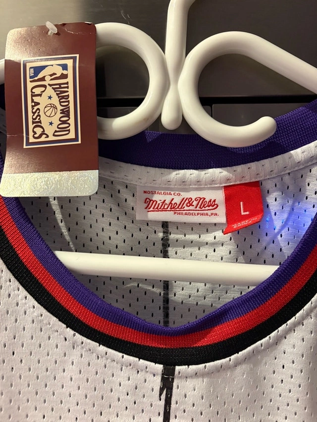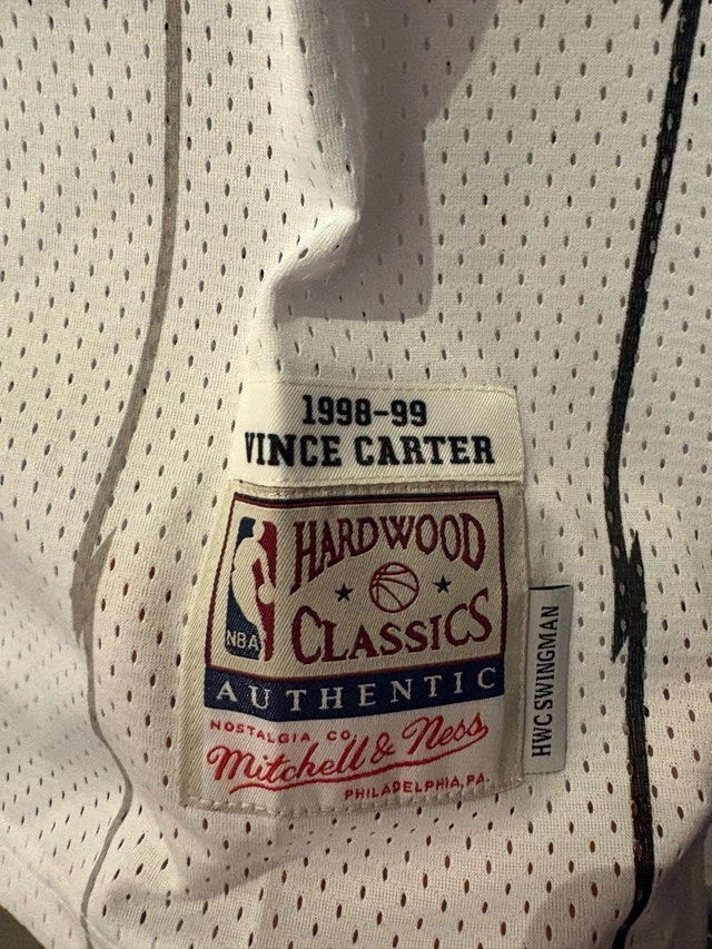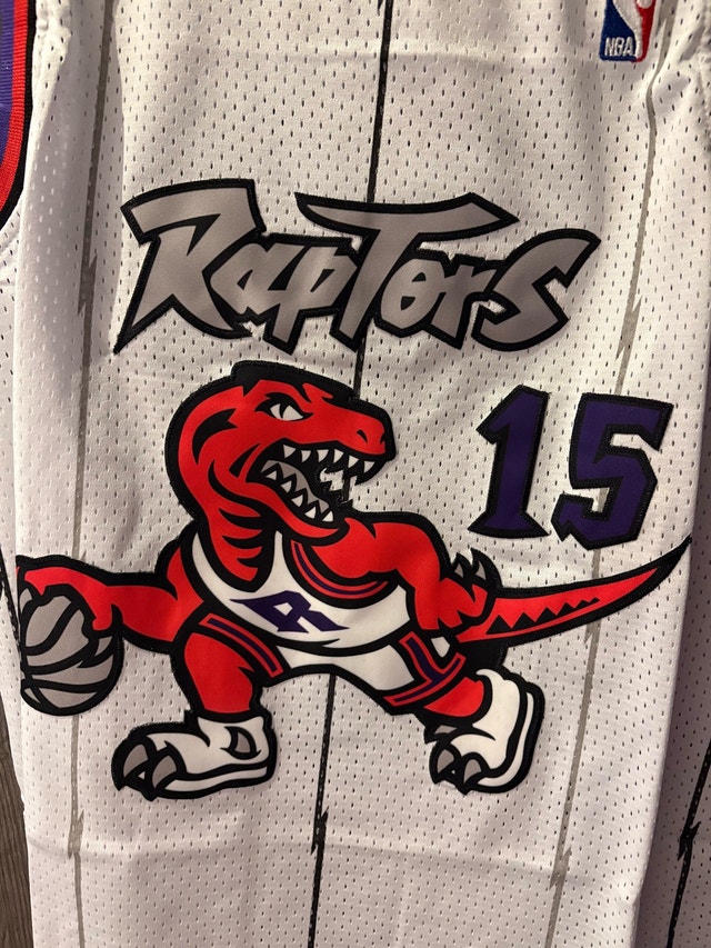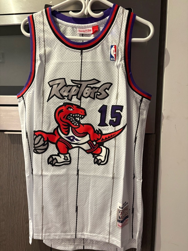 Selling a rare Mitchell & Ness Vince Carter Raptors jersey, size large. This jersey is a throwback to the 1998-99 season, featuring the iconic Raptors dinosaur logo. The jersey is in brand new with tags condition, a must-have for any Raptors fan or basketball jersey collector. Don't miss out on owning a piece of Raptors history! Available in sizes Medium, large and XL. Other raptors jerseys are available within 10 days of ordering, check my other listings.