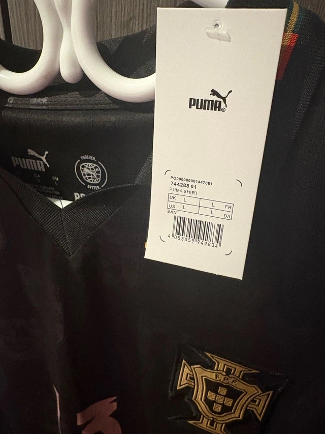 This Puma Portugal Eusebio #13 soccer jersey is brand new with tags, size large. * Puma Drycell Technology * Officially Licensed * Size Large. I also have Ronaldo and blank jerseys available & can get other colours & teams.