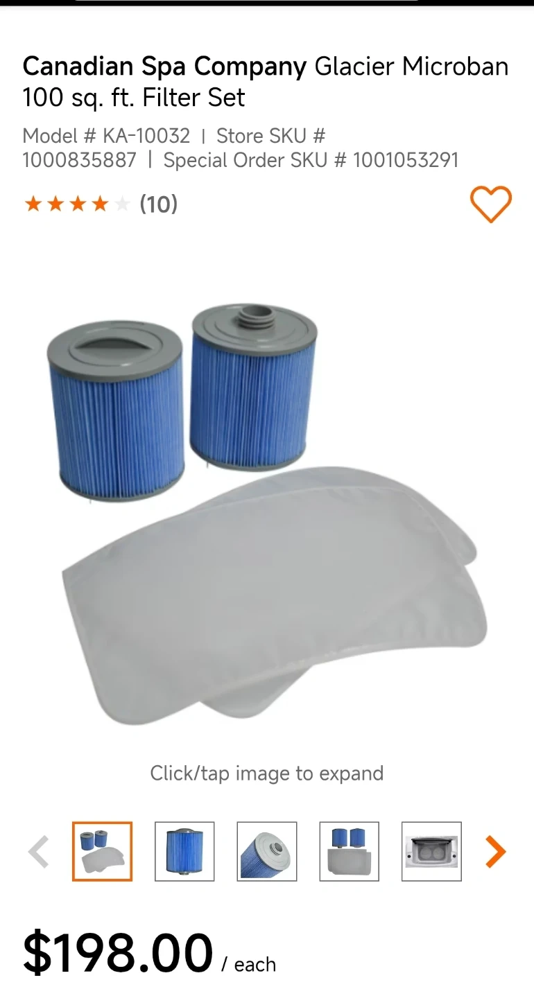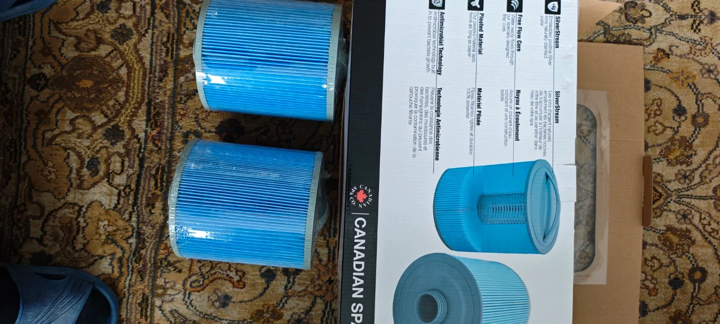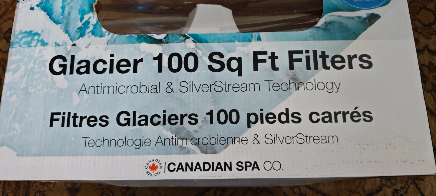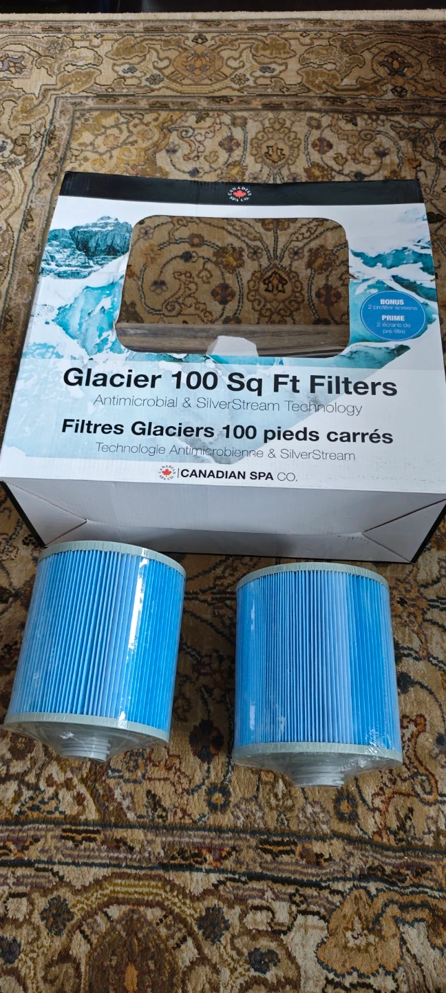 Selling a brand new set of Canadian Spa Company Glacier 100 sq ft filters! They are antimicrobial and feature Silverstream technology. The box includes two filters. The outside dimensions are 6 inches/150mm and inside dimensions are 1 1/4 inches/32mm