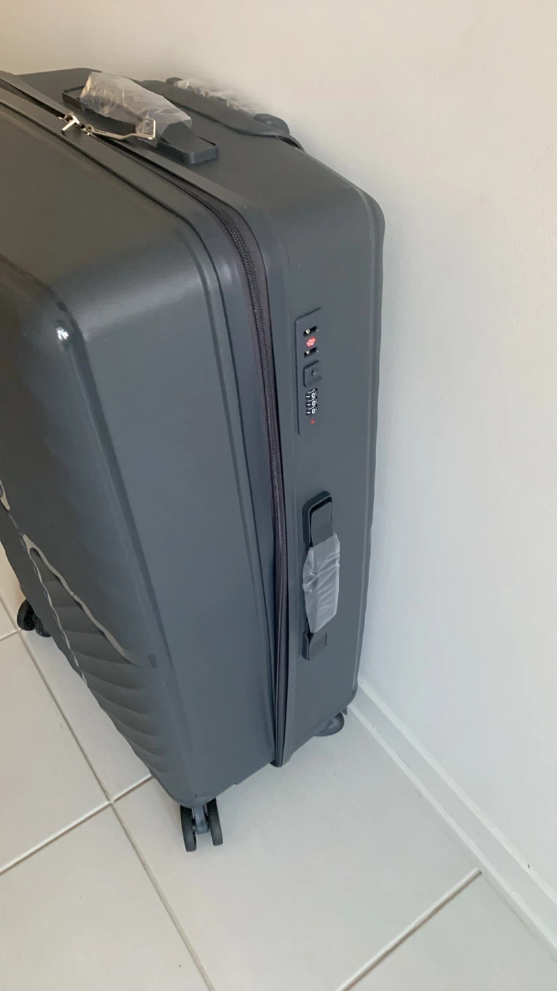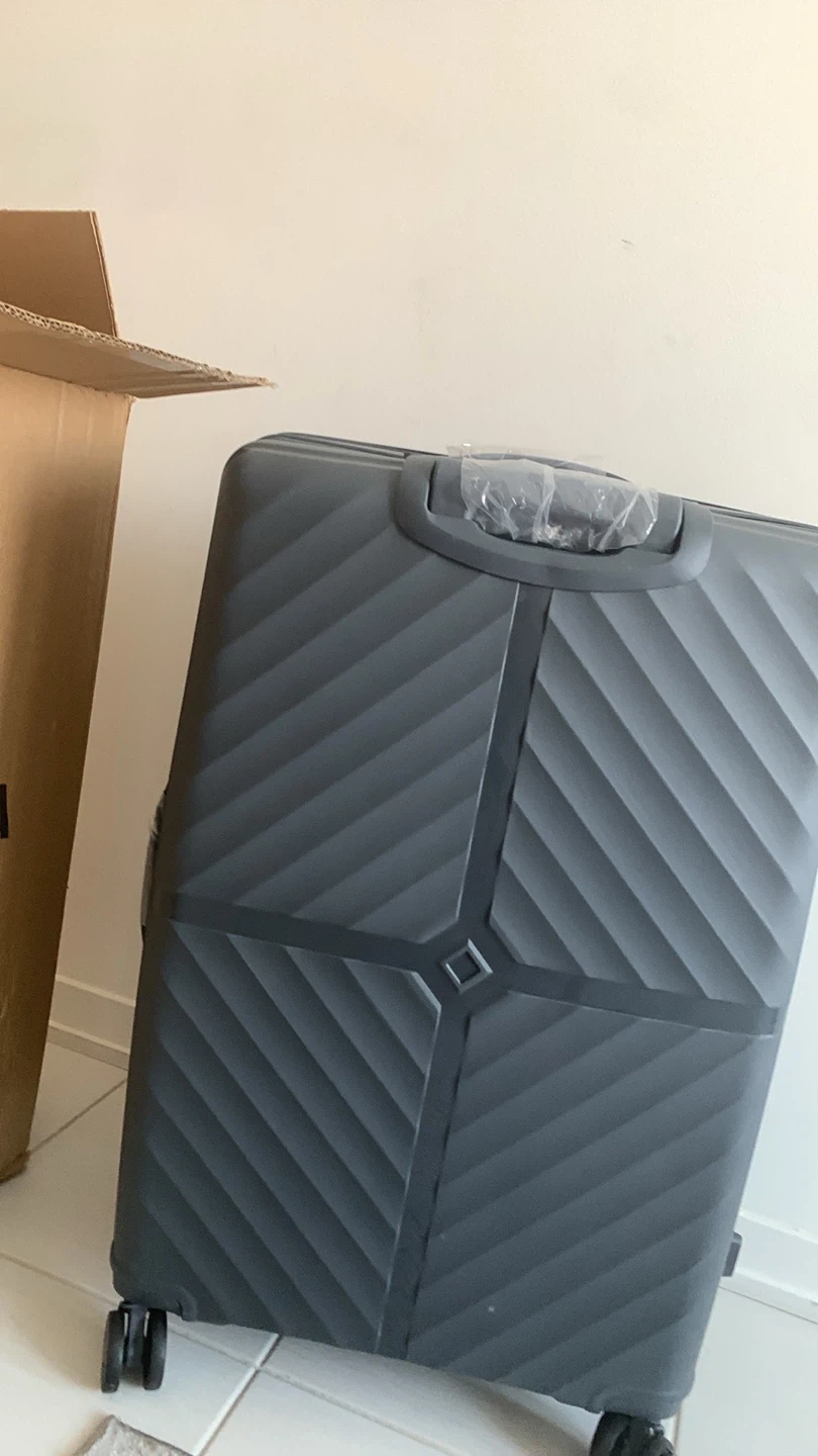 Selling a grey hardside suitcase! It's in great condition and ready for your next trip. It has wheels and a combination lock, and the box is included