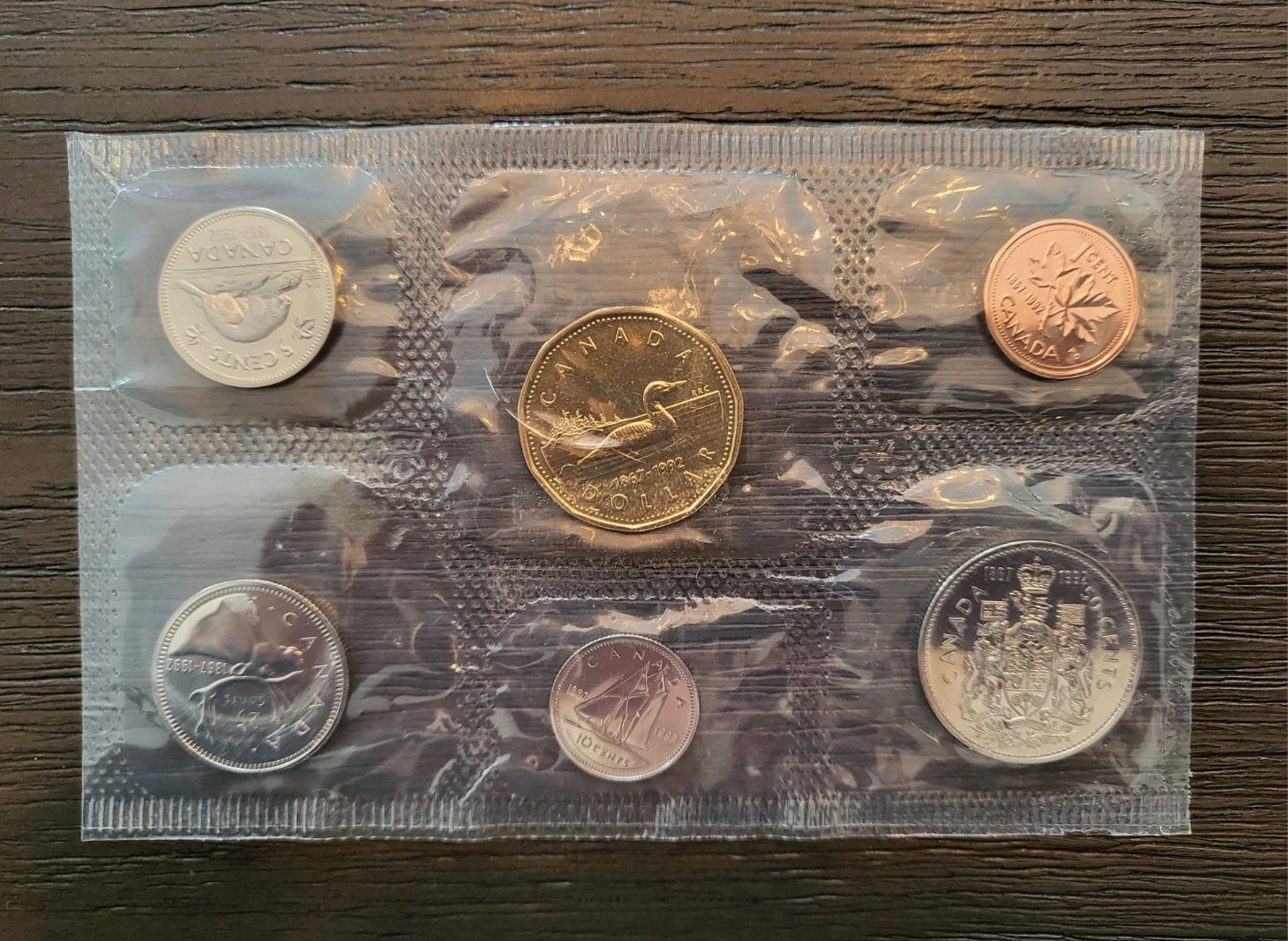 Selling a Royal Canadian Mint 1992 uncirculated coin set. It includes all the denominations from 1 cent to 1 dollar, each in uncirculated condition. The set is still sealed in its original packaging, complete with the specifications card. A great addition for coin collectors!