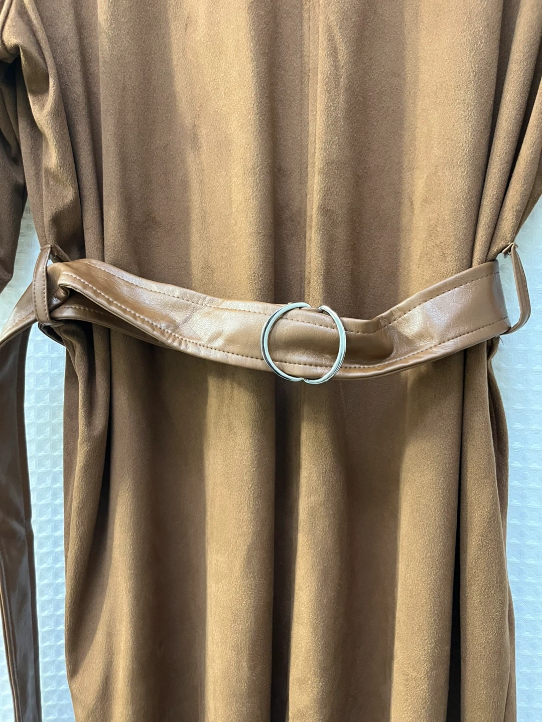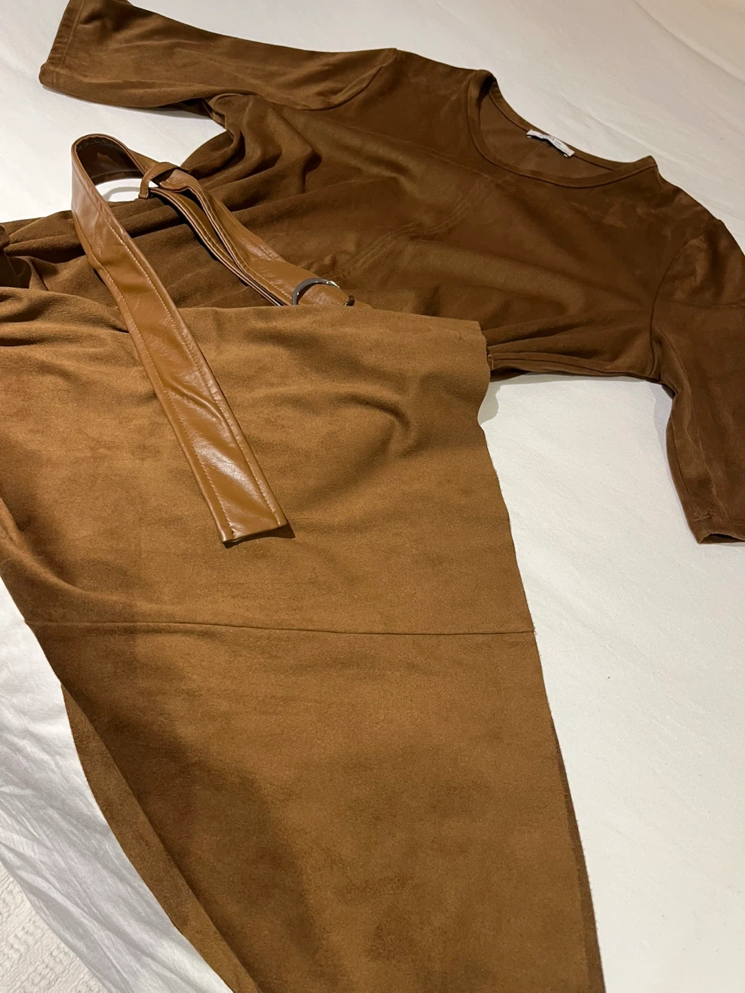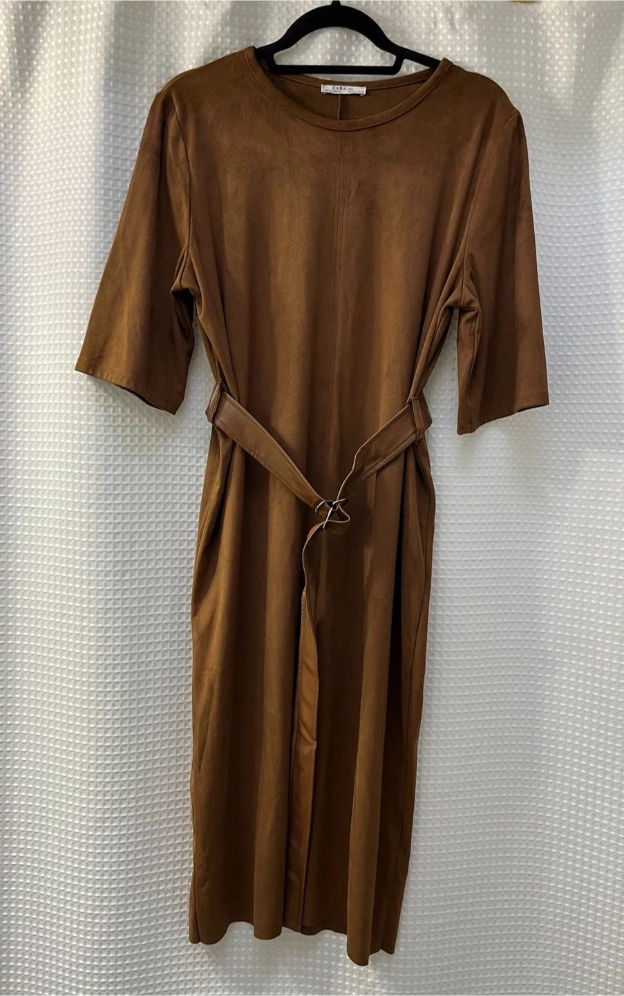 Zara Faux Suede Brown Belted Dress - Size XL