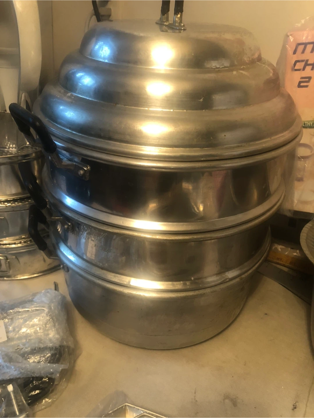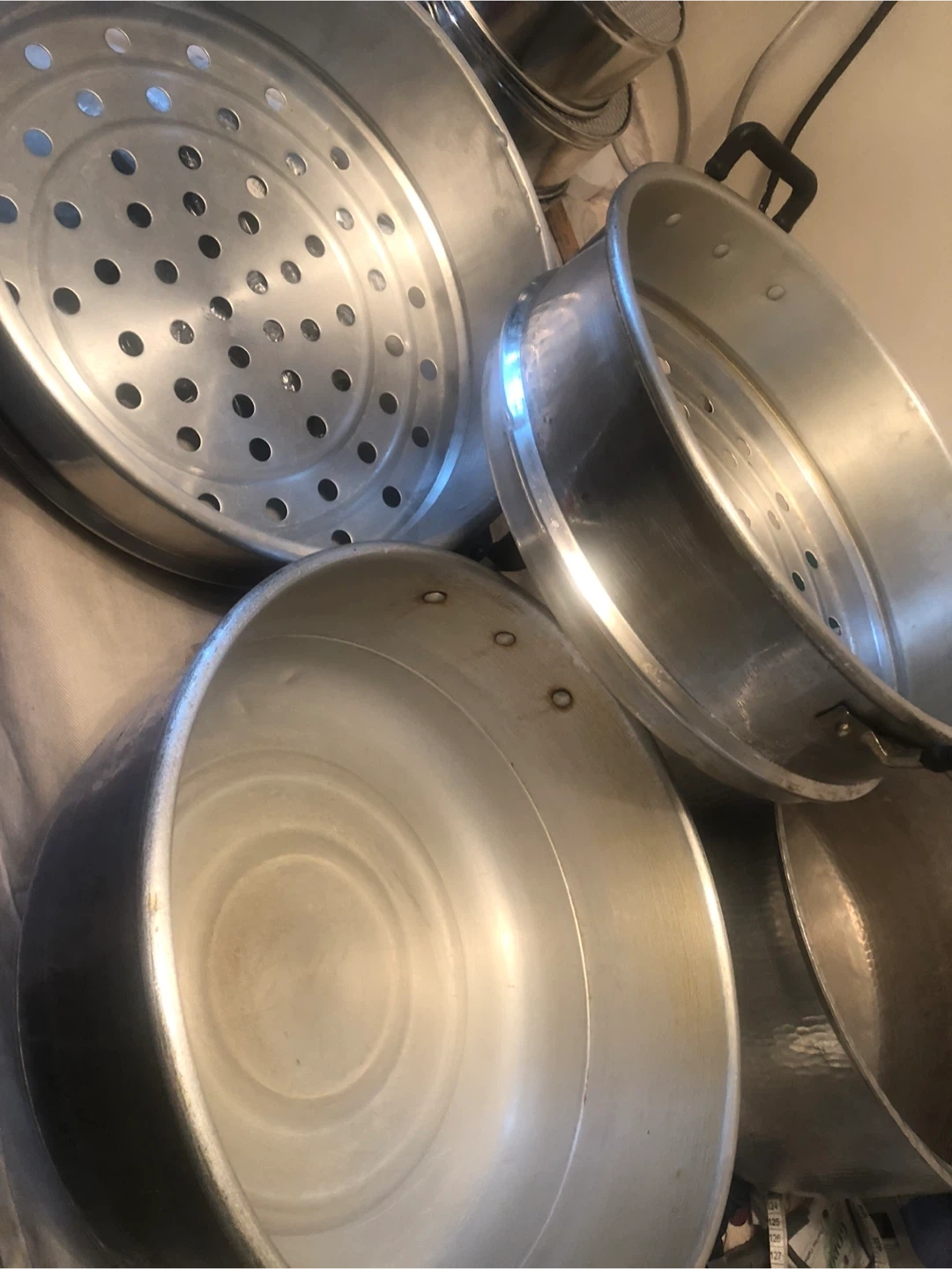 Selling a stainless steel steamer pot set. It has some signs of use, but it's still in good condition and ready for your kitchen! Also, there is a 14.5" diameter pot available without a lid.