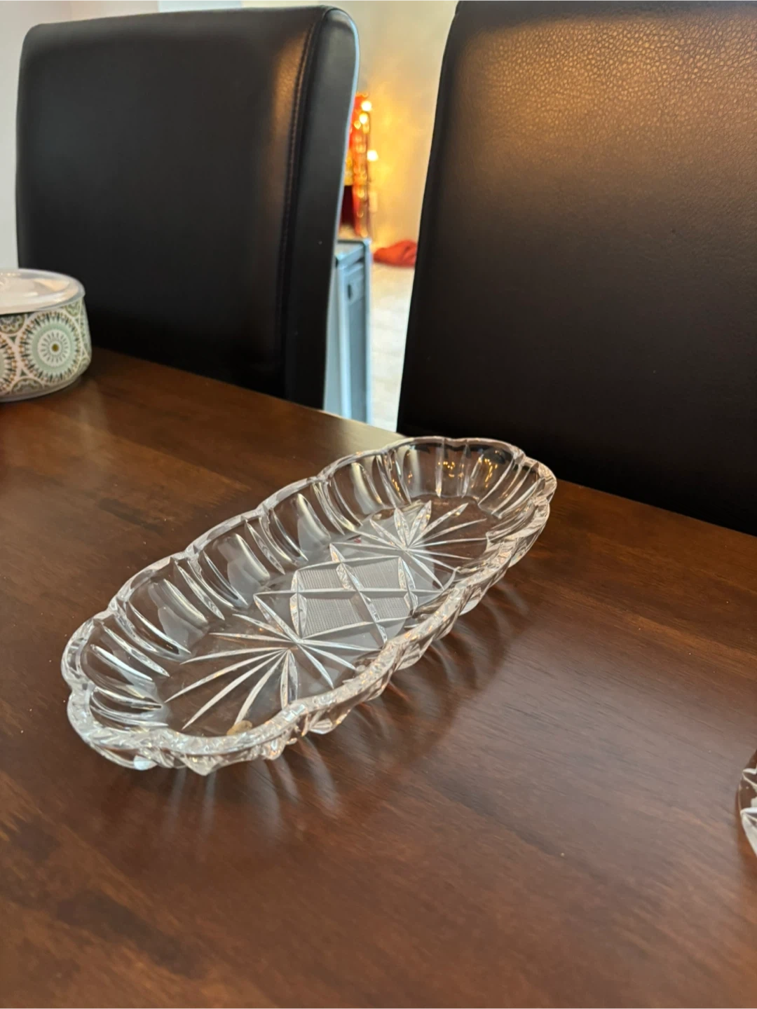 Selling a beautiful crystal glass serving dish! It's in great condition and ready to add a touch of elegance to your table setting
