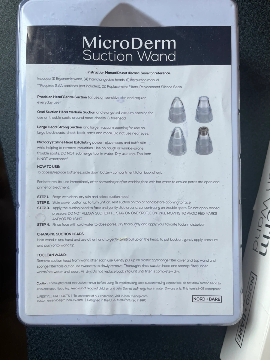 I'm selling a Nord + Bare MicroDerm Suction Wand. It's designed to painlessly and visibly deep clean pores while exfoliating wrinkle-prone spots for younger, healthier looking skin