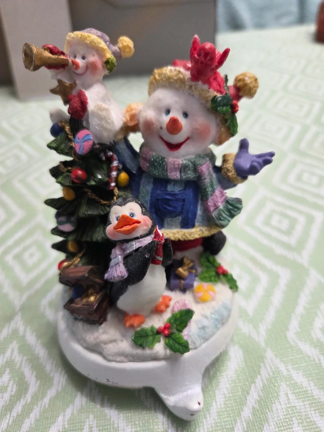 Christmas Stocking Holder with Anowmen and Penguin. Selling as no longer have space