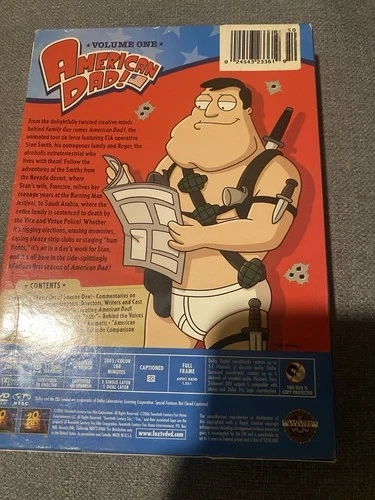 Dive into the hilariously irreverent world of "American Dad" with Volume 1, a 3-disc DVD set that promises to deliver laughs and entertainment. This collection captures the essence of the animated comedy that has become a cult classic, offering a perfect blend of satire and humor that's suitable for all audiences (NR rating). From the misadventures at the dinner table to the wacky escapades of the Smith family, this box set is a must-have for fans and newcomers alike. Experience the sitcom in its full-screen glory, complete with English subtitles and a 16:9 aspect ratio that brings the animation to life. Enjoy the convenience of this comprehensive collection from 20th Century Fox.