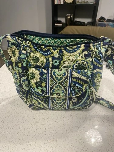 Vera Bradley quilted boho style vibrant blue and green shoulder or crossbody bag. Zipper closure. Front pocket with magnetic closure. Inner pocket as well. Adjustable strap. So cute !