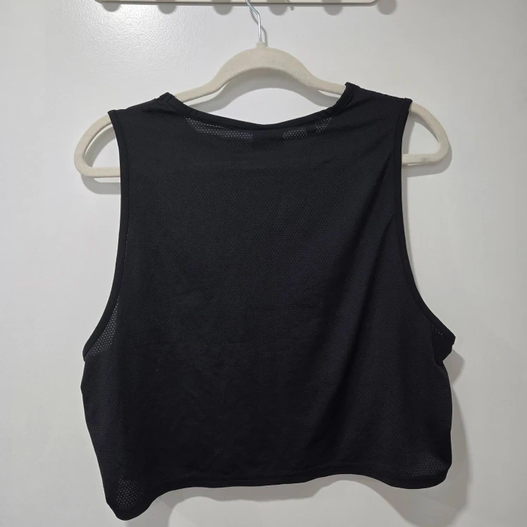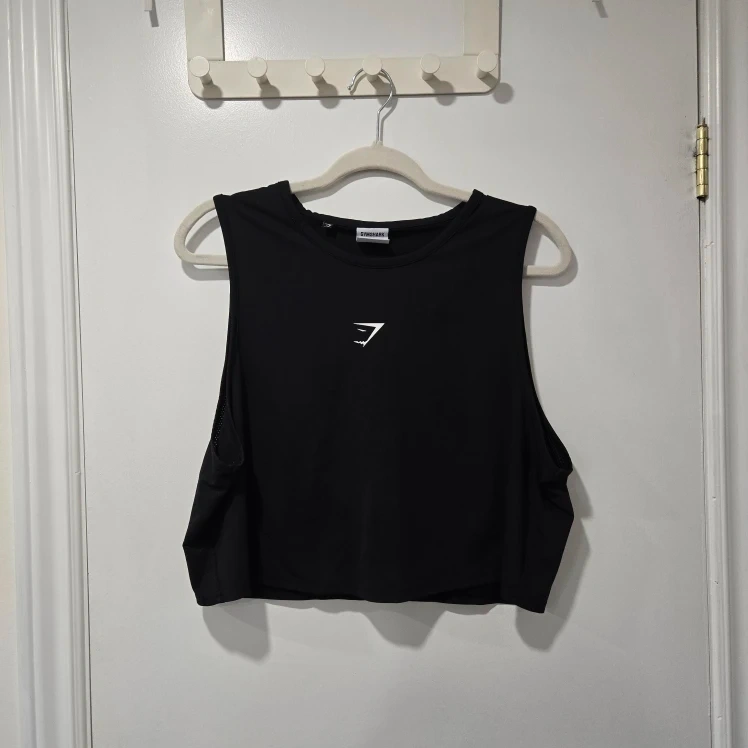 Black lightweight flowy crop top. Sleeveless. Jersey mesh back. Gymshark logo in the front.
