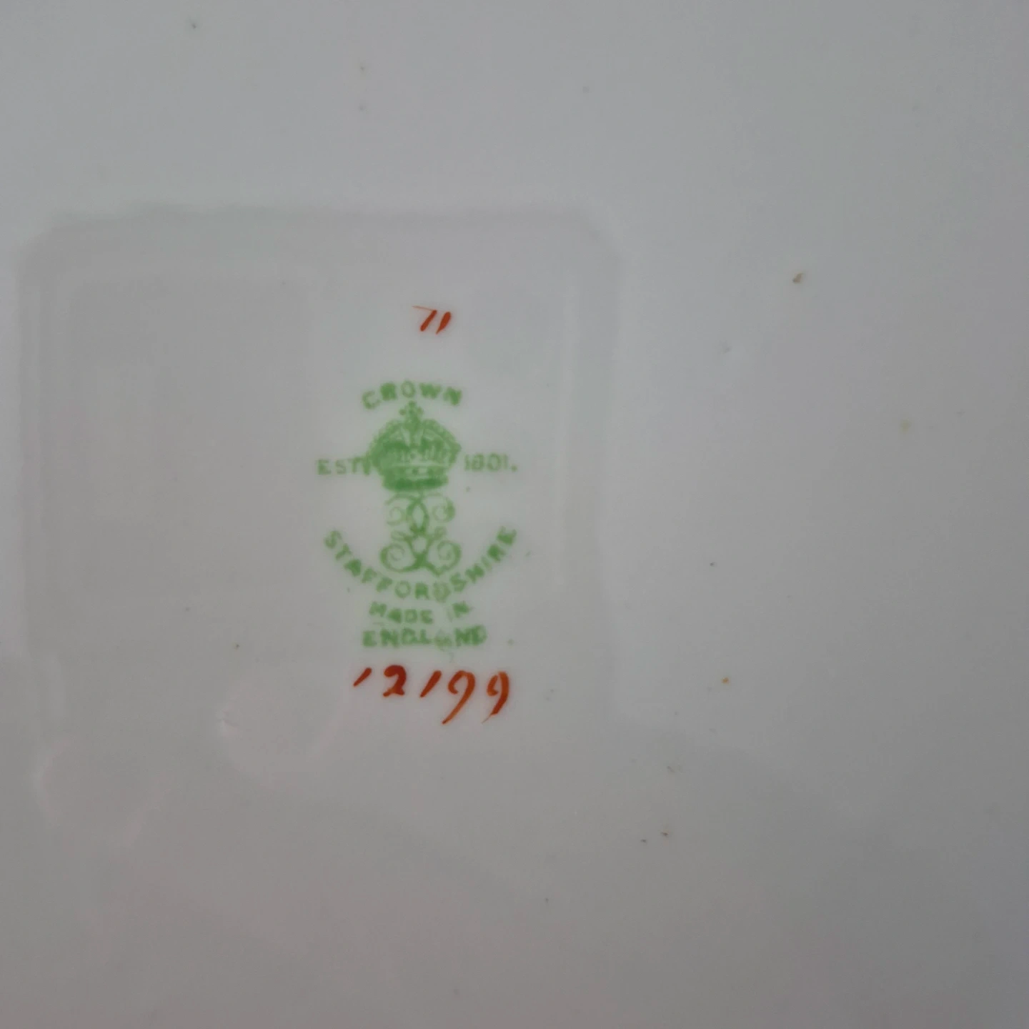 This is a vintage late 1890's to mid-to-late 20th century Crown Staffordshire porcelain plate in the Art Deco style, featuring a floral motif with yellow and red flowers. Made in England. Perfect for adding a touch of vintage charm to your home #12199