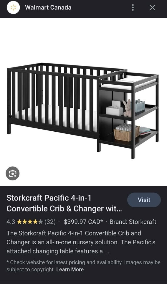 1 / 51 / 5Buy & SellConvertible crib and changing pad 4 in 1Convertible crib and changing pad 4 in 1$150Item is disassembled.WHERE TO MEETCheck LocationView MapSELLERverifiedRicoScarborough Junction18212 reviews3 chats·3 favorites·35 viewsSEND CHAT TO SELLERHi Rico! I’m interested in your listing.Hi Rico! I’m interested in your listing.Get the Karrot app to chatSign In to chat