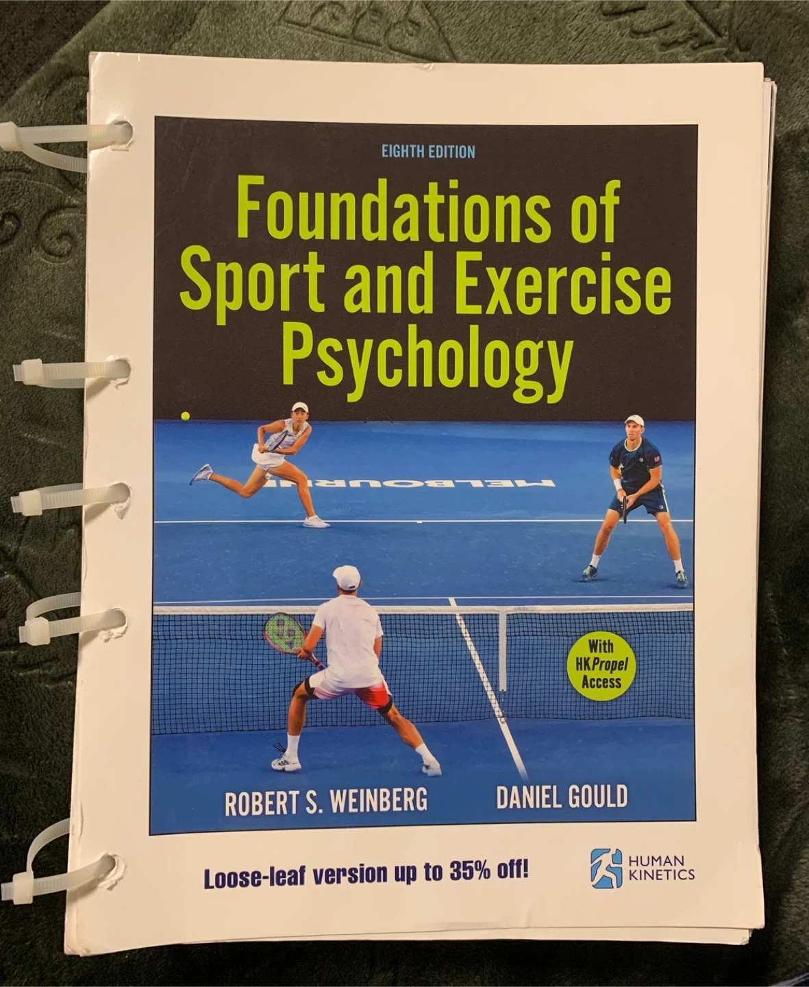 Selling the eighth edition of 'Foundations of Sport and Exercise Psychology' by Robert S. Weinberg and Daniel Gould. It's the loose-leaf version and has some highlighted sections.