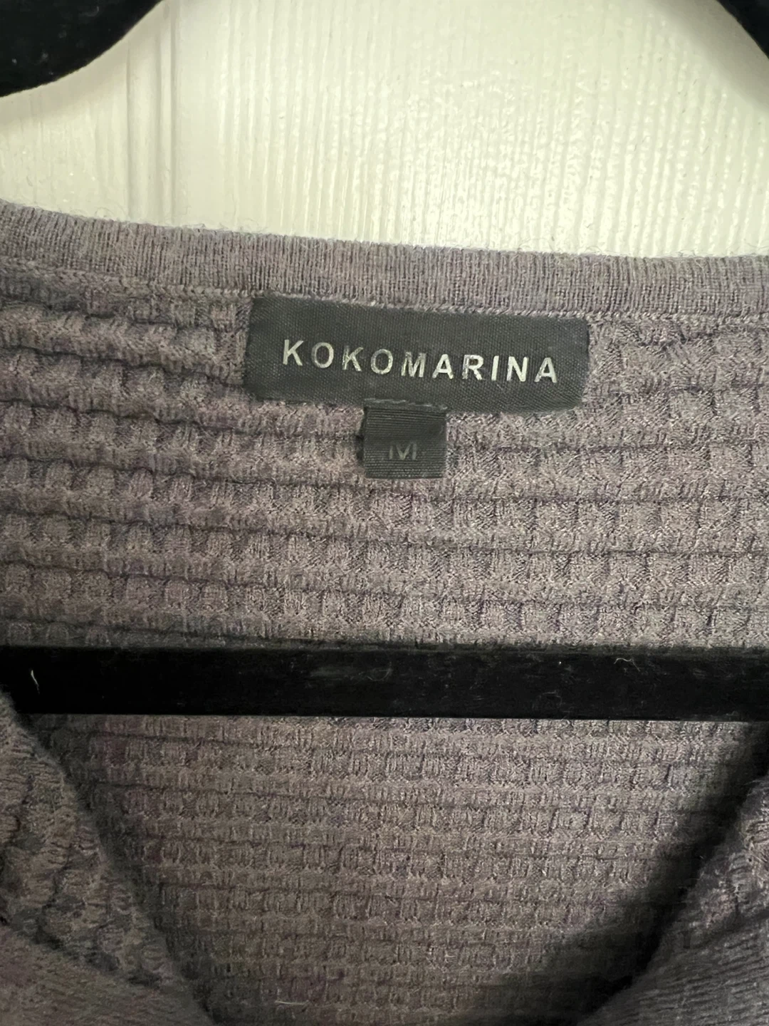 Selling a Kokomarina zip-up cardigan in a lovely grey colour! It's a size medium and in great condition. Perfect for layering or wearing on its own. It has a unique textured knit pattern that adds a touch of style to any outfit!