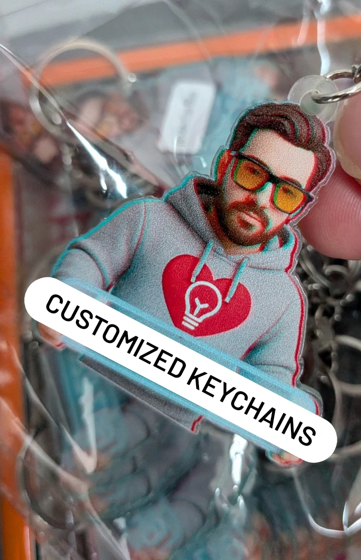 Here's a customized keychain example, if you want to represent your business, give to your loved ones. You can make a custom key chain for your self as well delivery is available for additional.