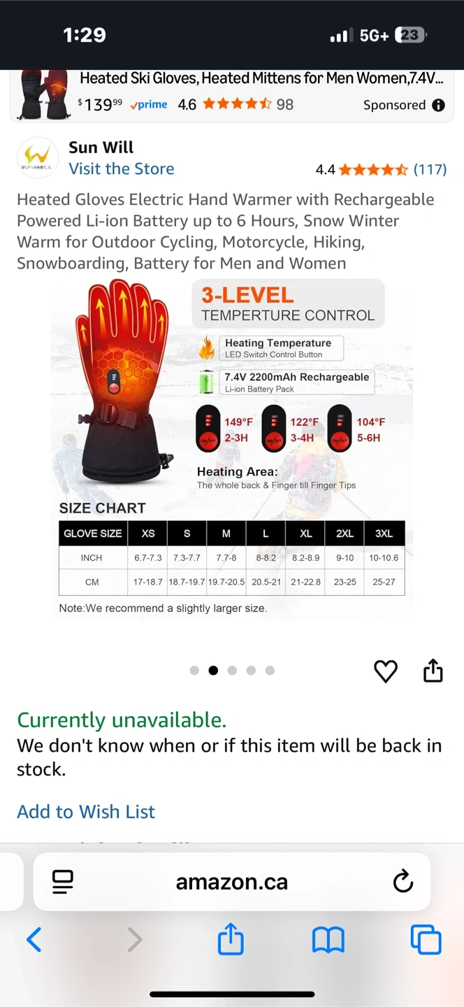 Selling a pair of Sun Will heated gloves in size XXXL. They are NEW and come with the original box. These gloves have a rechargeable battery and provide up to 6 hours of heat. Perfect for outdoor activities like cycling, motorcycling, hiking, and snowboarding!