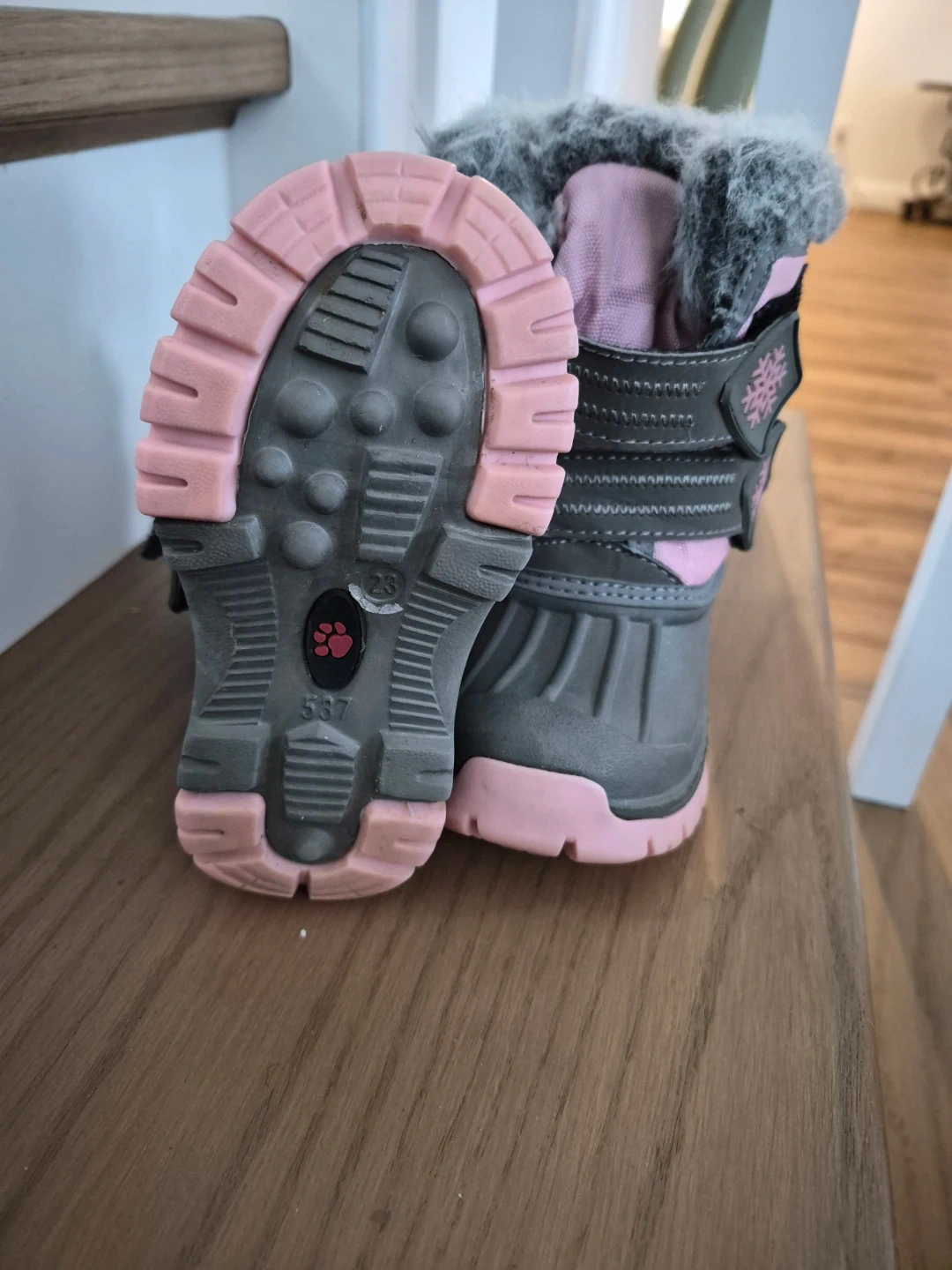 These adorable Stonz toddler winter boots are in great shape and ready for snowy adventures! They feature a grey and pink colour scheme with a faux fur trim. Size 5.