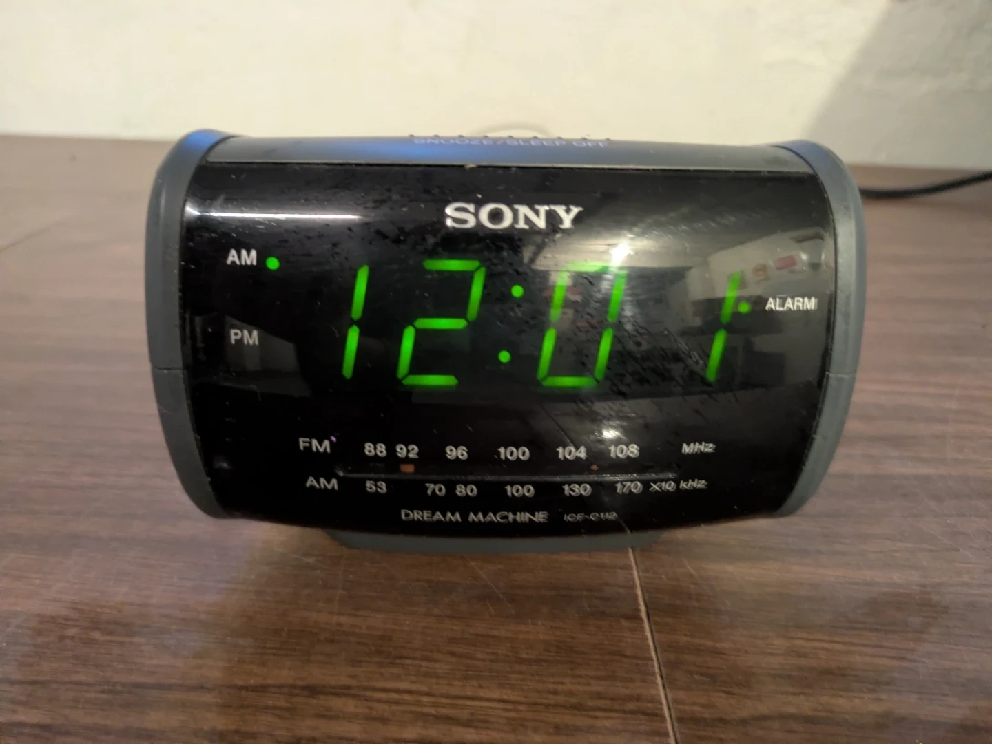 Selling a Sony Dream Machine alarm clock! It's in good working condition and would be perfect for a bedside table. It has a digital display and radio function for waking up to your favourite station. The model number is ICF-C110