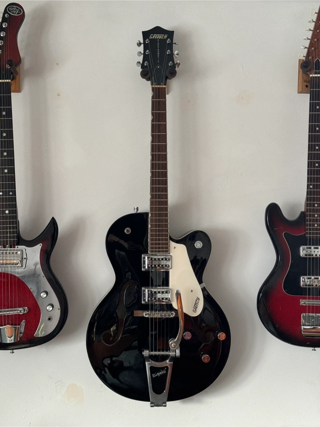 Gretsch Electromatic 5120 guitar with Bigsby vibrato unit (no case). It plays and sounds excellent with a versatile range of tones to choose from. Great for classic rock, blues, country, jazz, rockabilly, etc. Very clean looking with almost no signs of wear.