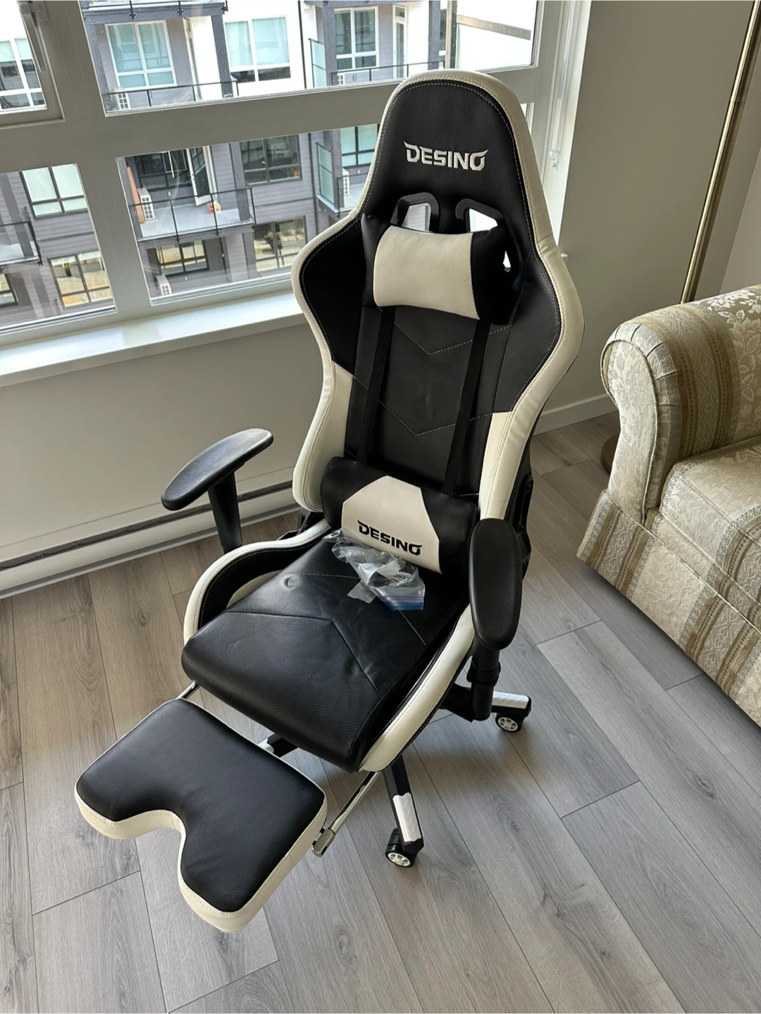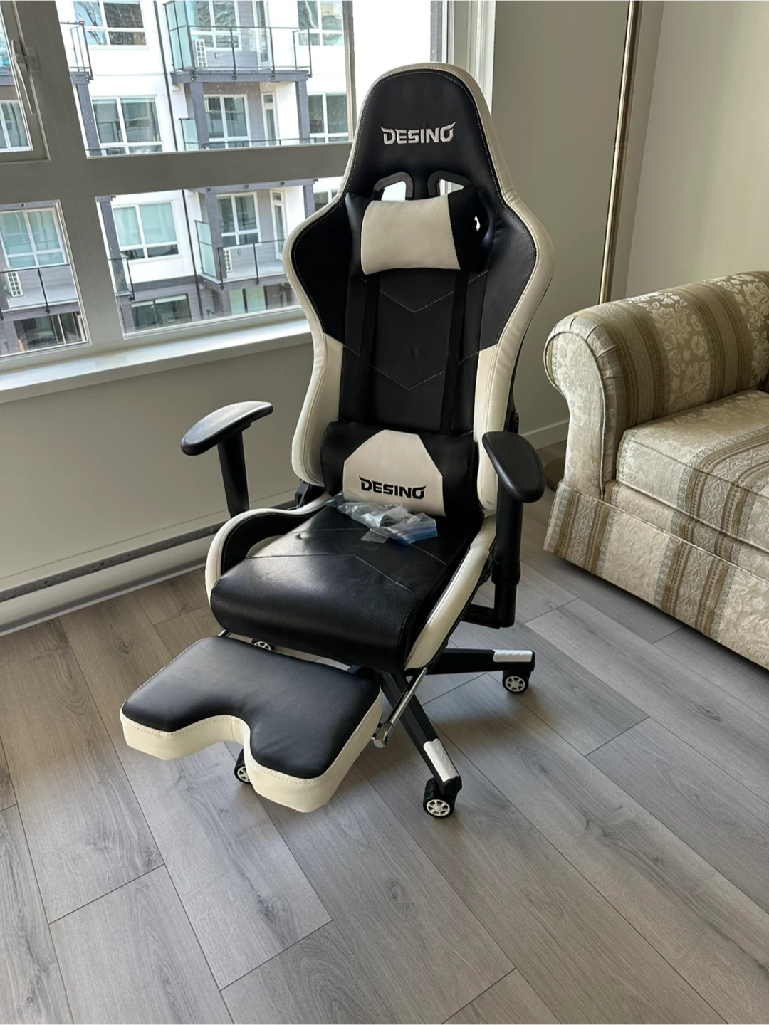 Selling a DESINO gaming chair in black and white. It's in great condition and super comfortable for long gaming sessions or working from home! Only two years old and gently used!! Can be delivered within 20 km of Port Moody. Package deal with desk for $150.
