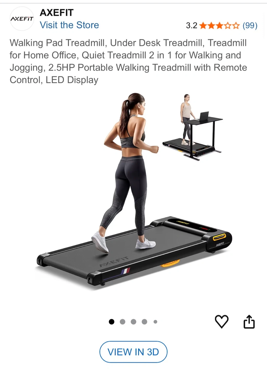 AXEFIT Under Desk Treadmill - Portable Walking Pad